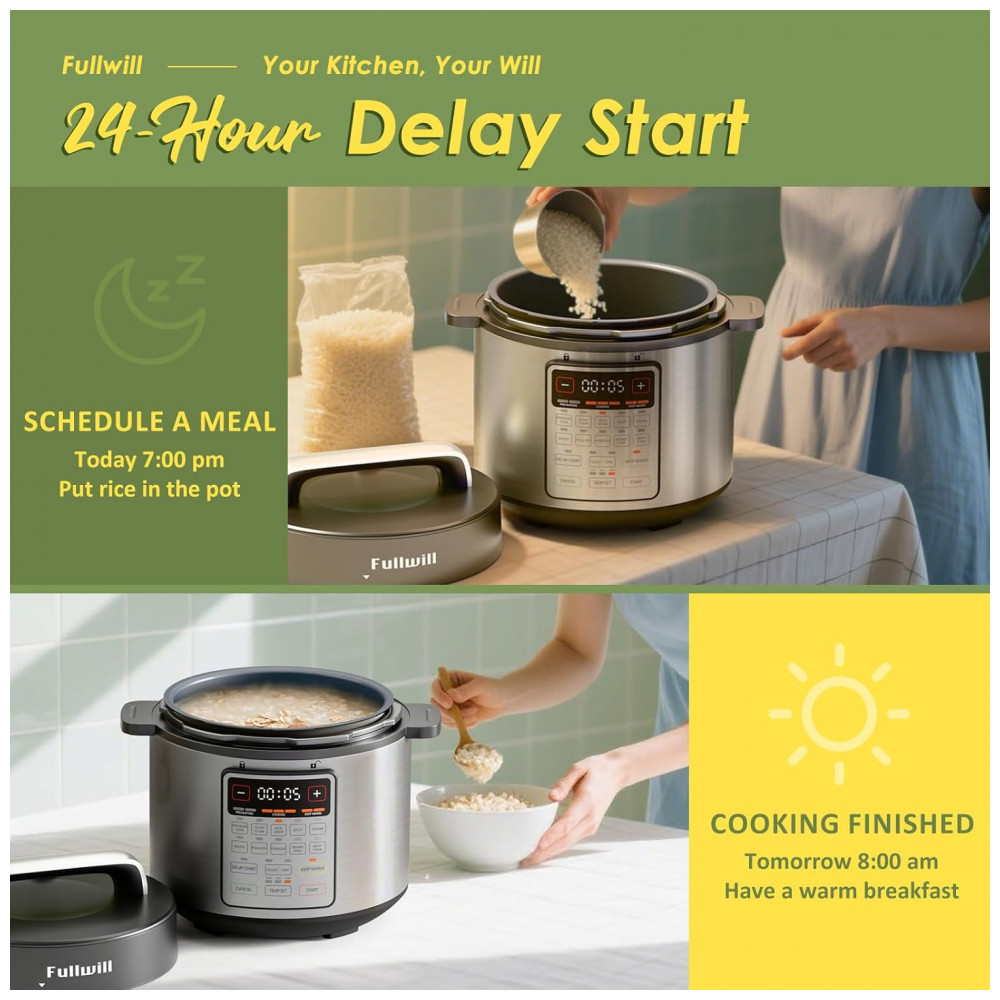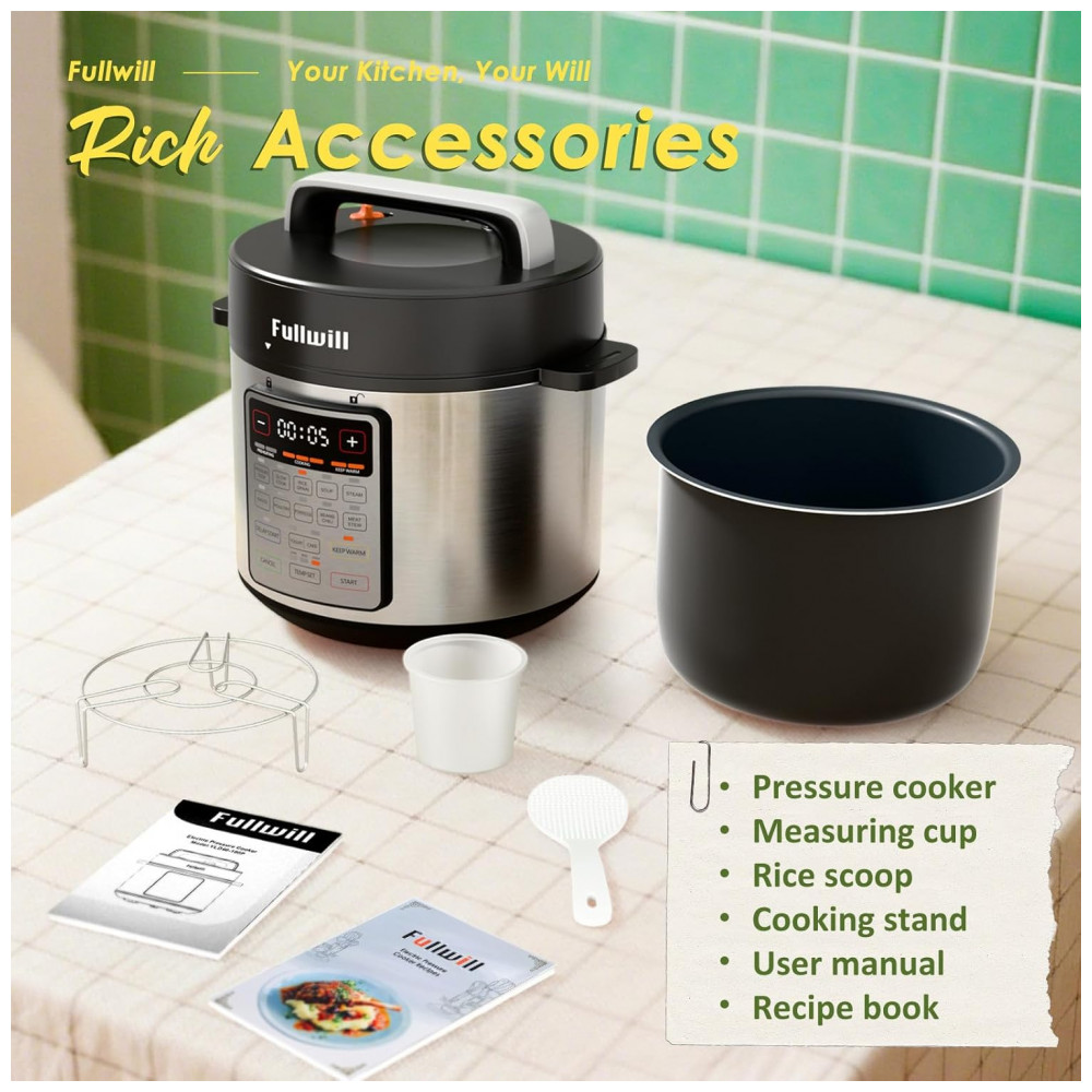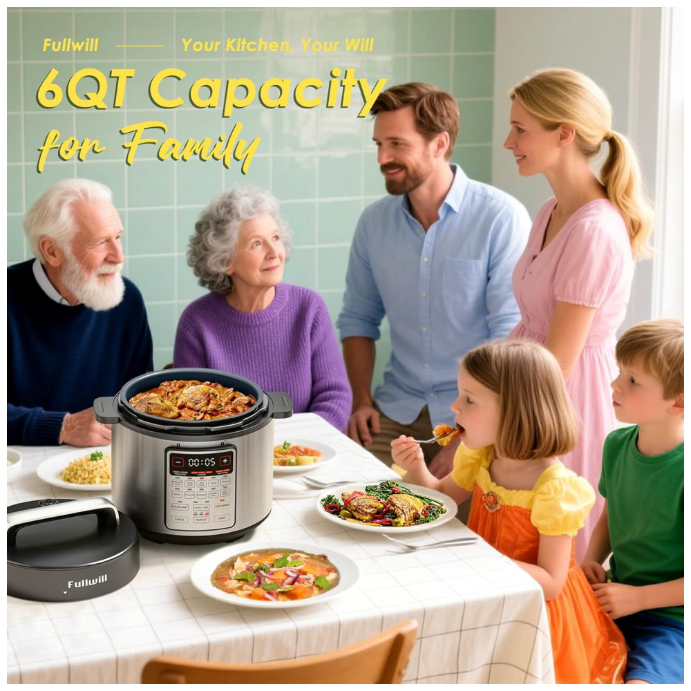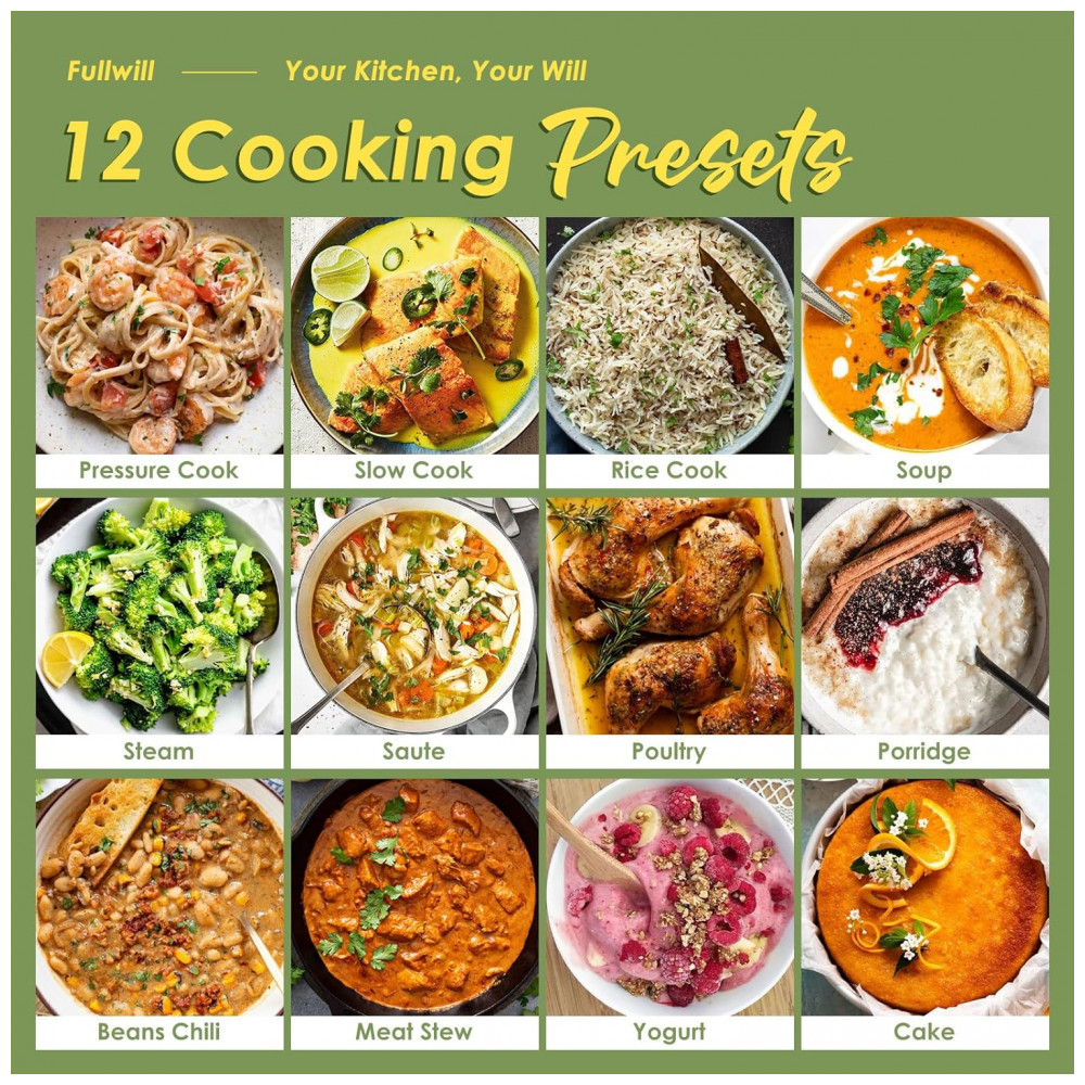 Panela de Pressão Elétrica Fullwill 9 em 1 12 Programas Instantâneos Multi Cooker Panela Antiaderente de 6 Litros