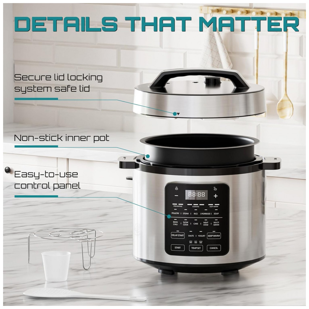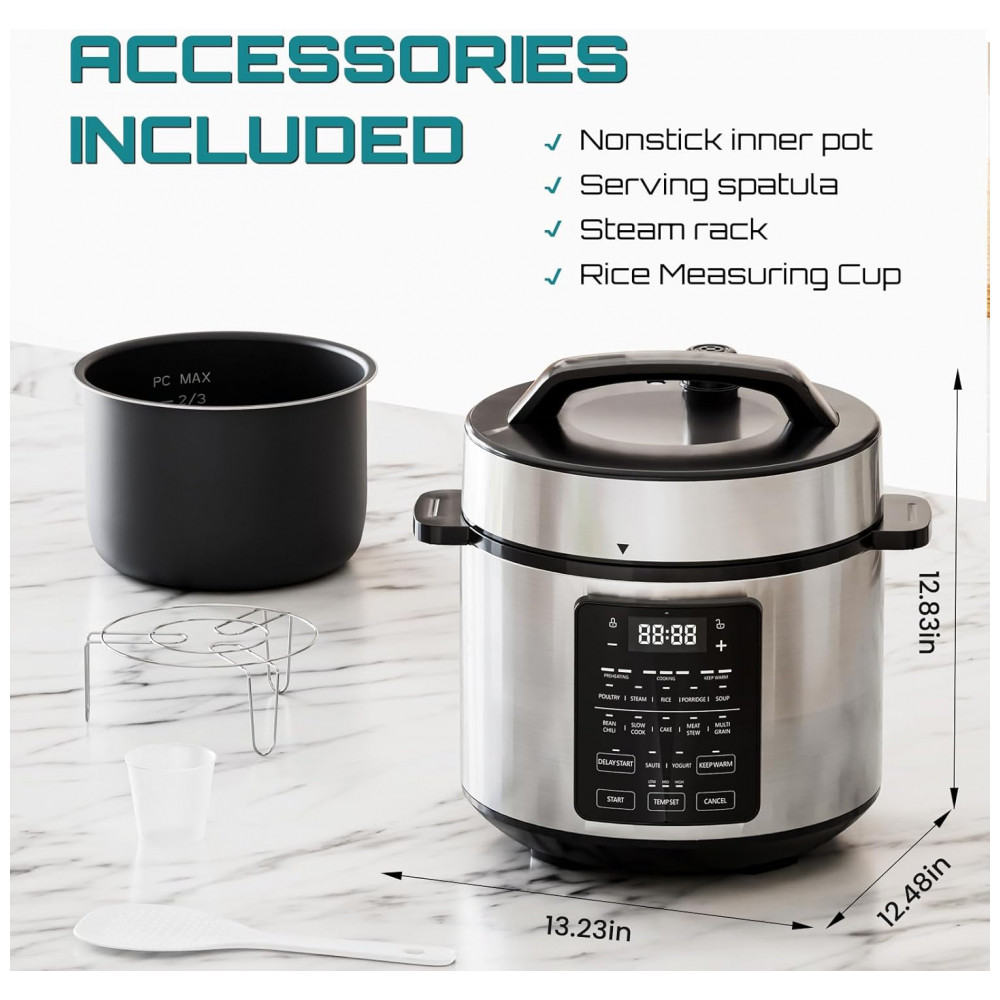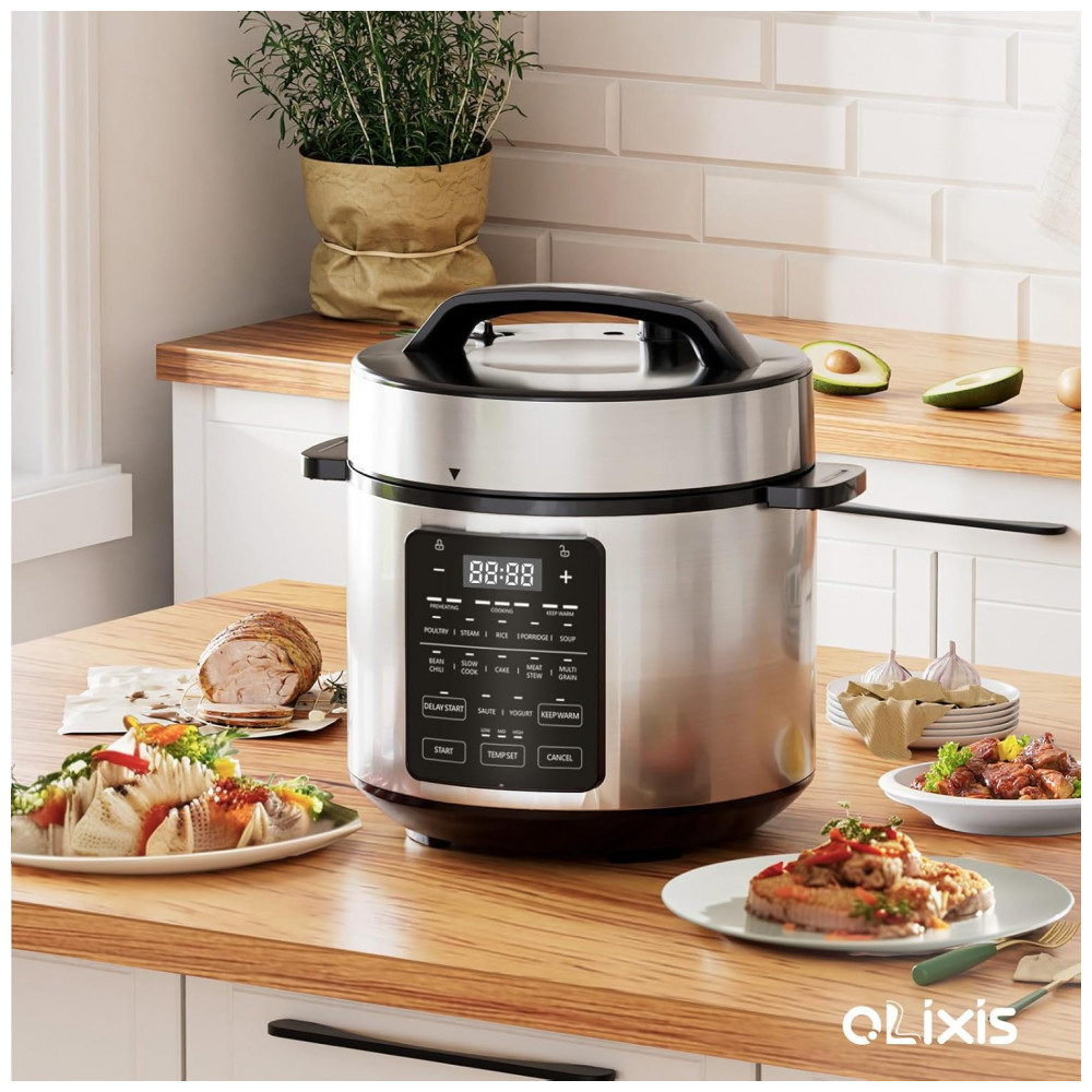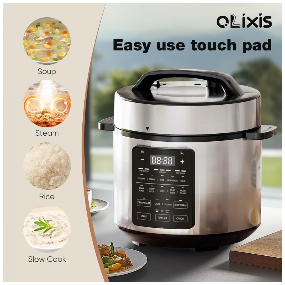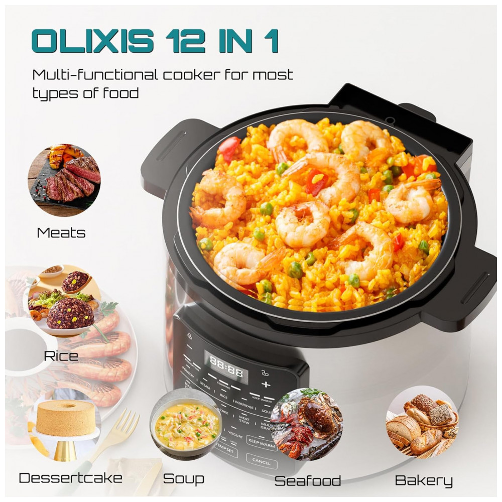 Panela de Pressão Elétrica OLIXIS 6 litros em Aço Inoxidável Multiprocessador Elétrico 12 em 1 para Arroz Cozimento a Vapor Fabricante de Iogurte