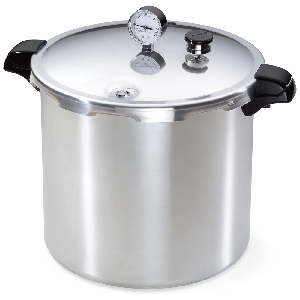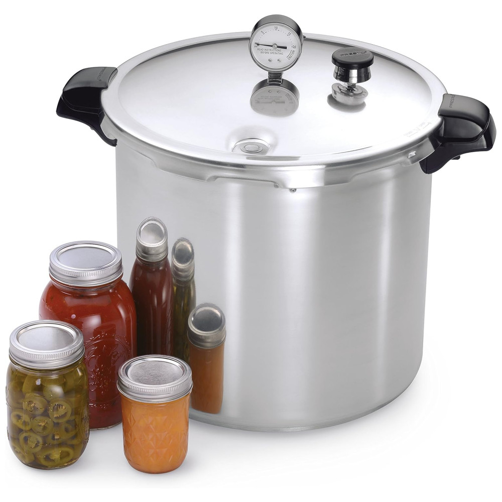 A enlatadora de pressão Presto 21,7 litros é uma ferramenta de qualidade profissional, feita de alumínio resistente e com alças Staycool e tampa Stronglock. É recomendada pelo Departamento de Agricultura dos EUA como o único método seguro para enlatar alimentos com baixo teor de ácido, como vegetais, carnes e aves. Além disso, funciona como enlatador de água fervente para conservar frutas, geléias, picles e salsa em potes de meio litro e meio litro.