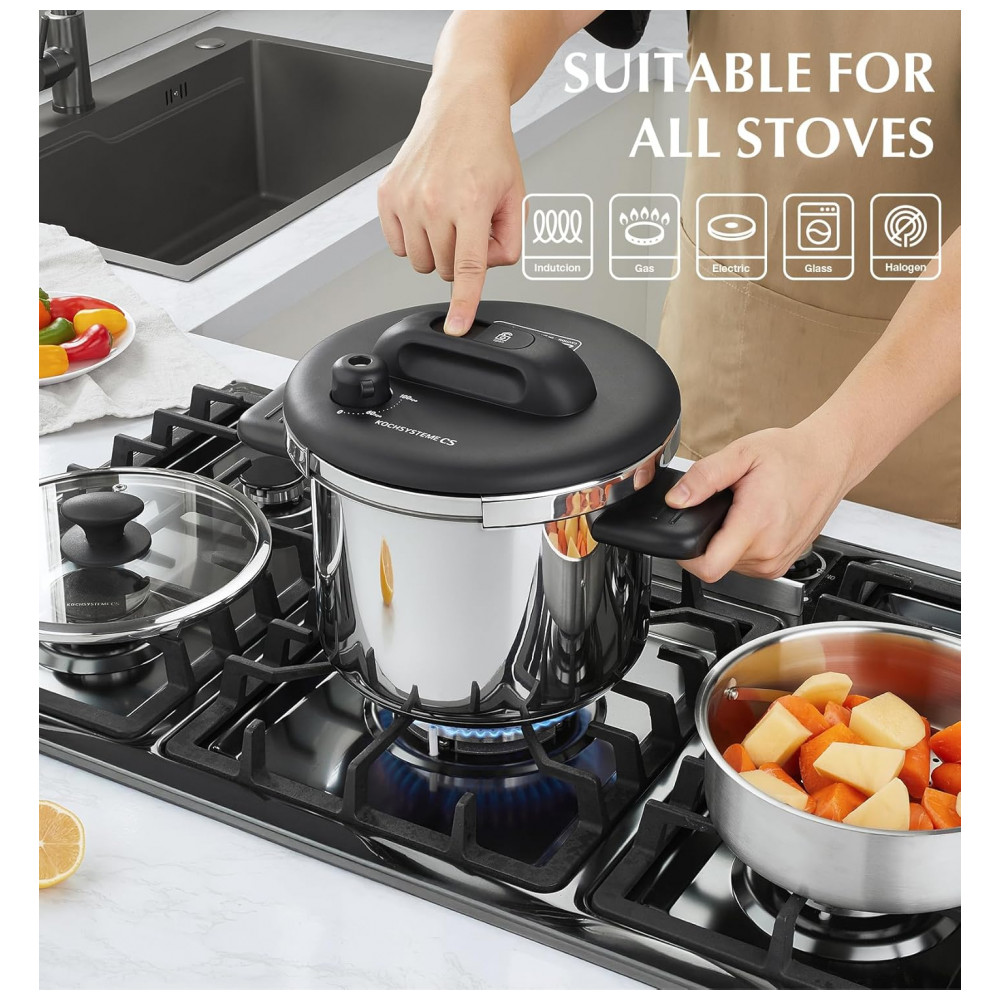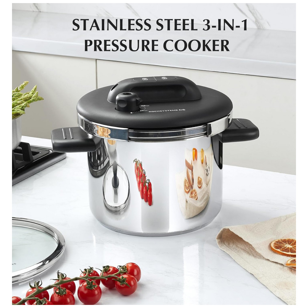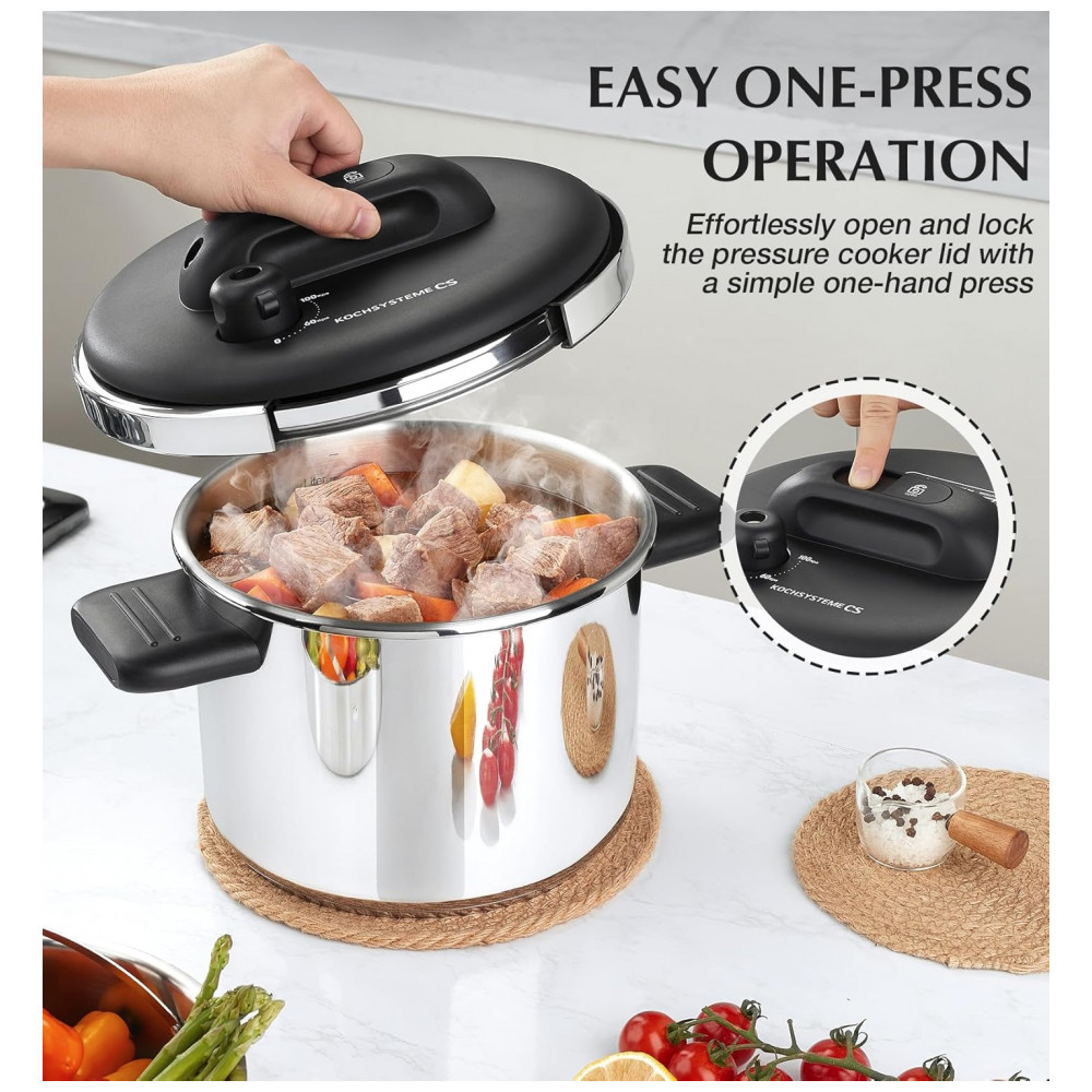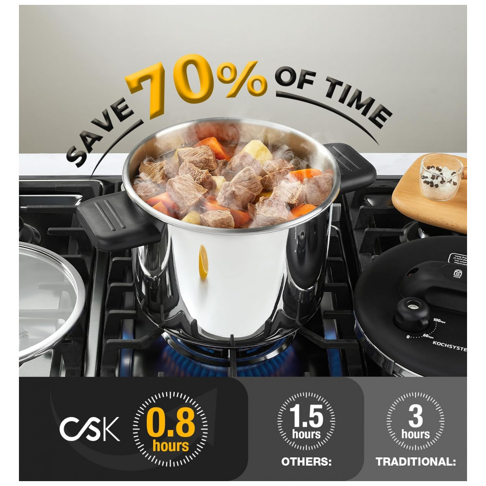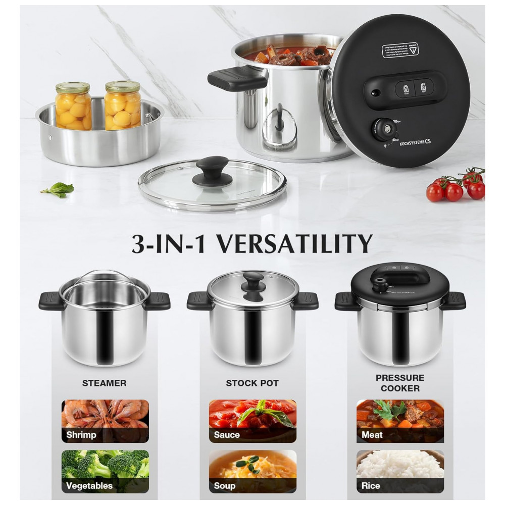 Panela de Pressão em Aço Inoxidável KOCH SYSTEME CS 63 litros Olla de Pressão Trava Easy OnePress 3 Configurações de Pressão 3 PSI