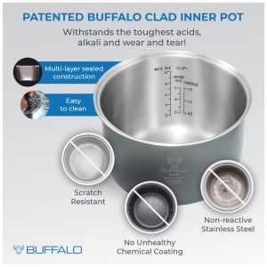 A panela interna de aço inoxidável cozinha melhor, alimentos mais saudáveis sem revestimento químico, resistente a arranhões, sem reação alimentar negativa, construção selada multicamadas