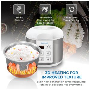 Panela de Pressão Multifuncional 1.8L Painel Digital Aço Inoxidável 500W 110v BUFFALO KW BSC18 Branco