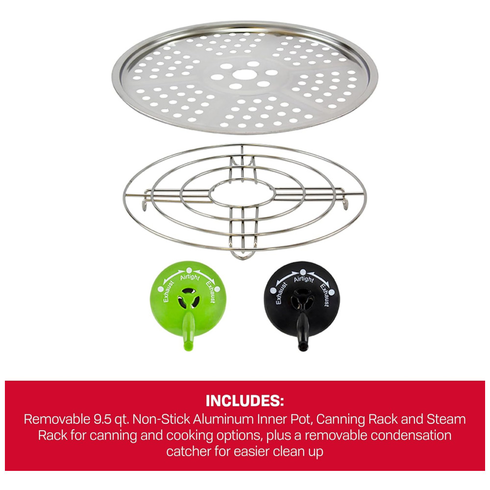 INCLUI: Grade para enlatamento, grade para vapor e coletor de condensação removível para facilitar a limpeza e oferecer opções extras de cozimento.