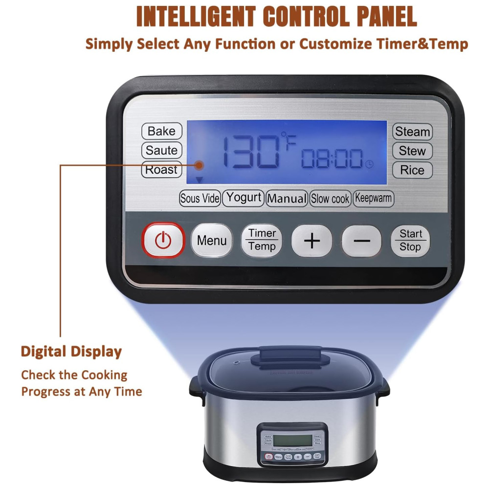 Hub de Cozinha Tudo-em-Um: Sua cozinha está prestes a se tornar muito mais versátil com o Multi Slow Cooker Spoonlemon. Com 11 funções em 1, este aparelho está pronto para preparar de ensopados cozidos lentamente a obras-primas sous vide e iogurtes caseiros.