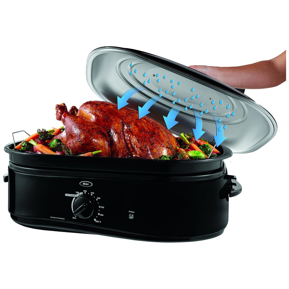 Alta Capacidade de 18 Litros: Perfeita para assar, cozinhar lentamente e preparar assados, comportando até um peru de 10 kg, ideal para grandes reuniões e ocasiões especiais.