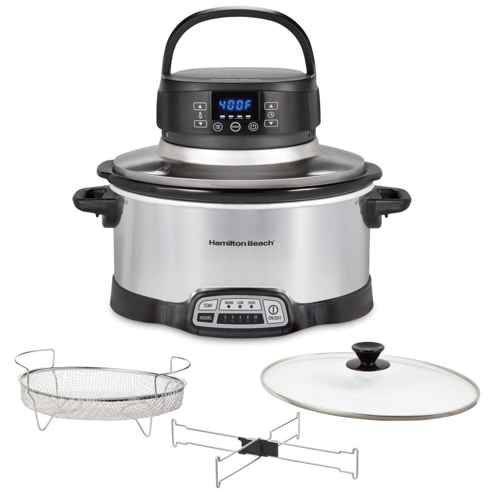 Descubra a Panela de Cozimento Lento Programável Hamilton Beach, 5,7 Litros, com Tampa Air Fry – A combinação perfeita de praticidade e sabor!