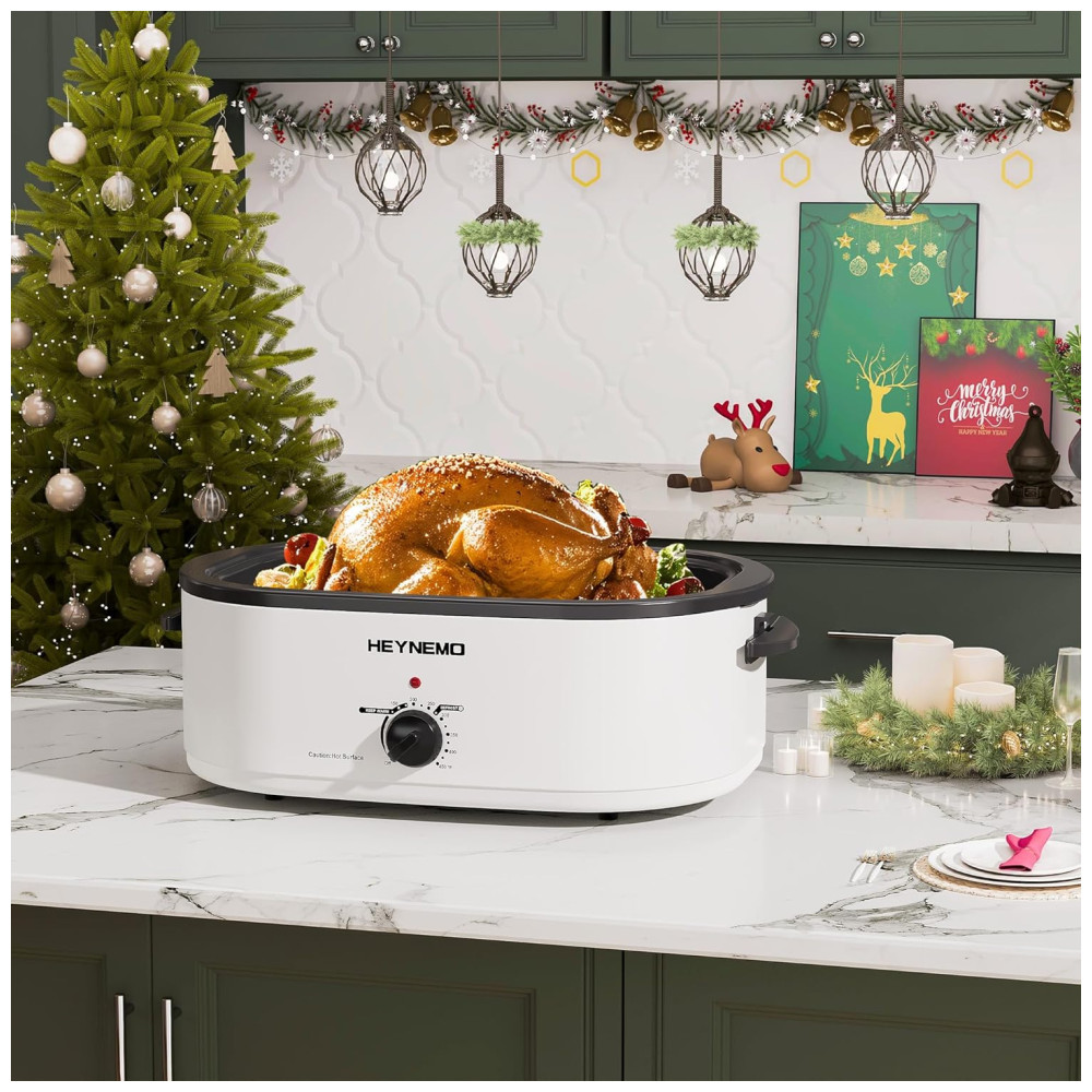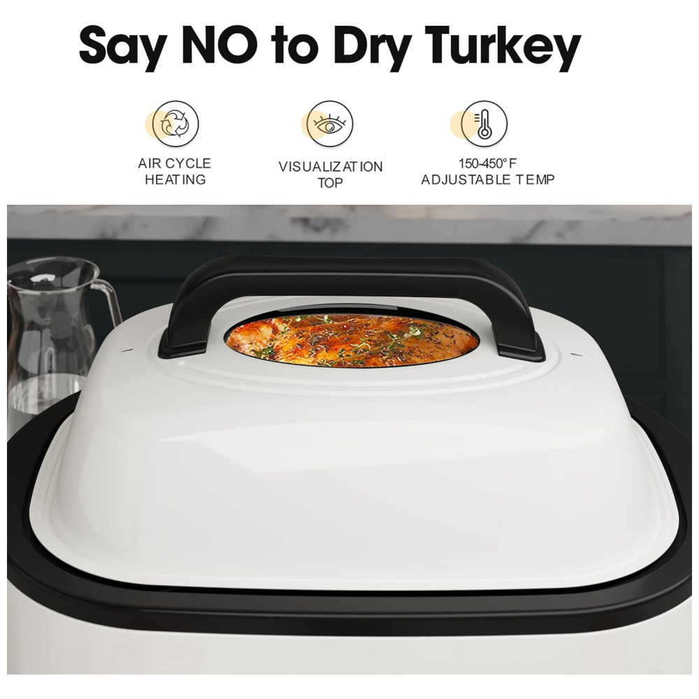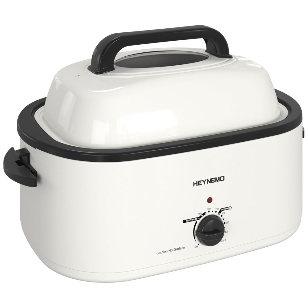 FORNO ASSADOR DE PERU COM TAMPA DE AUTO BASTECIMENTO 1450W com luz vermelha, controle de temperatura em toda a faixa, torna sua comida mais saborosa em diferentes temperaturas. A tampa auto alinhada recircula continuamente a umidade, tornando a comida mais deliciosa. Os pés de borracha antiderrapantes mantêm o forno no lugar com segurança e zenamento conveniente do cabo.