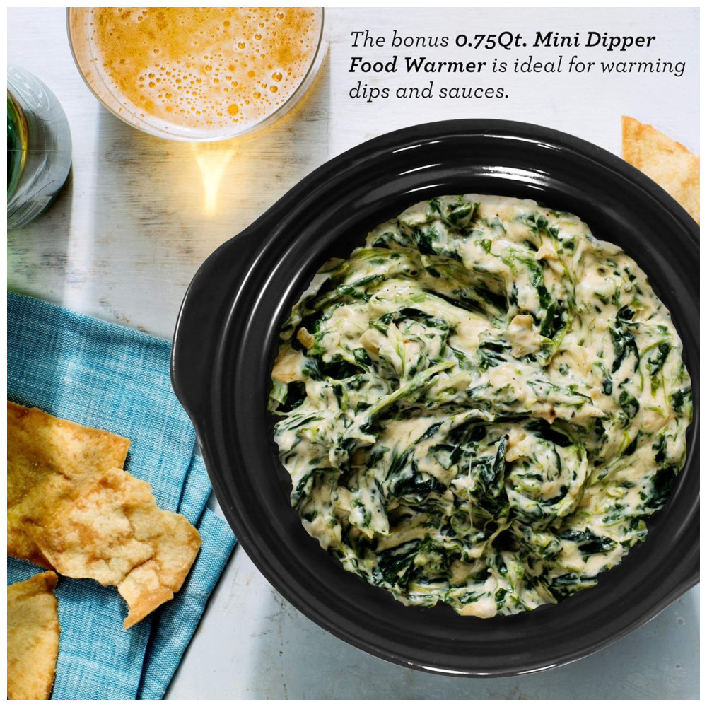 O fogão lento possui três configurações: Alta, Baixa e Quente, que mantém sua comida na temperatura ideal até a hora de servir. O bônus Mini Dipper de 700 mL é perfeito para aquecer molhos e dips, oferecendo uma solução prática para acompanhamentos.