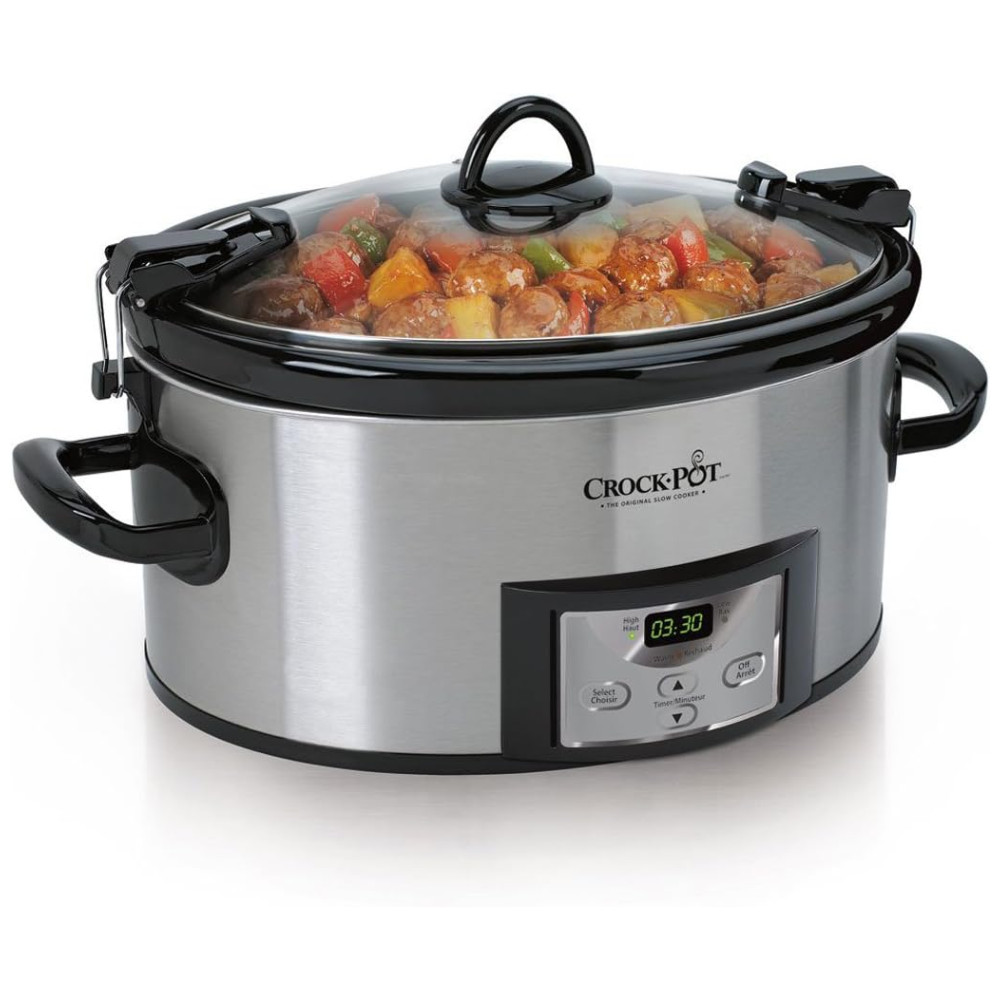 Apresentando a Panela de Cozimento Lento Programável Crock-Pot Cook & Carry de 5,6 litros com Timer Digital, a escolha perfeita para quem busca praticidade e sabor em cada refeição, além de conveniência para transportar seus pratos com segurança.