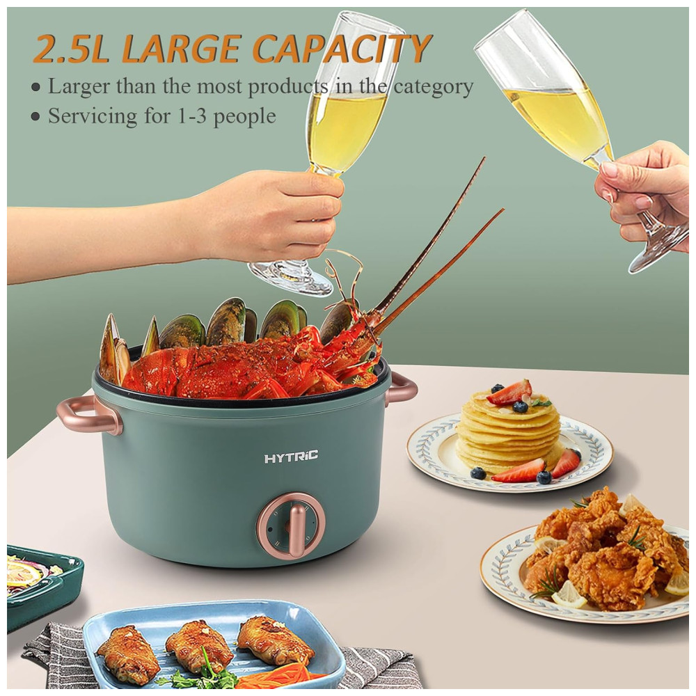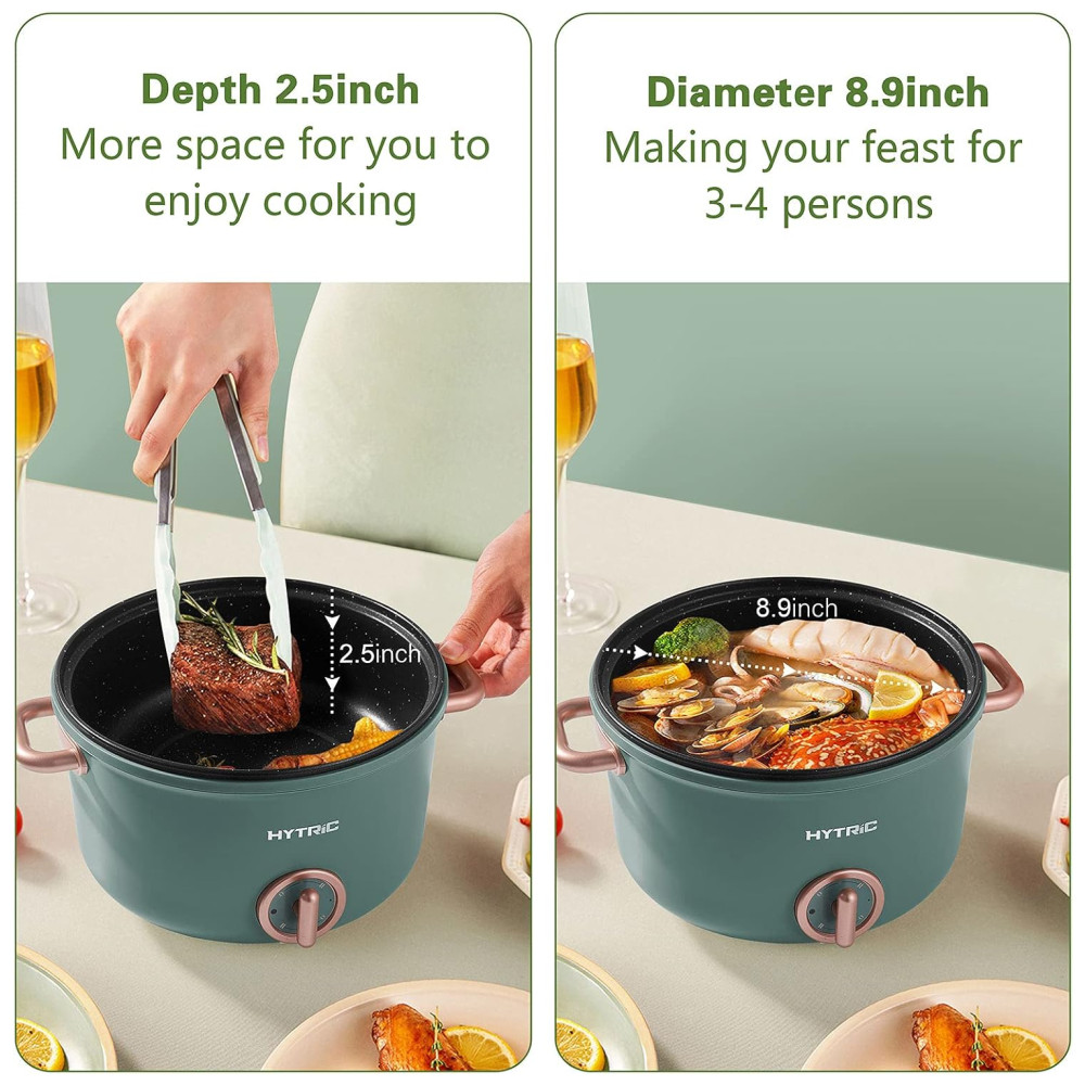 Capacidade de 2,5L – A panela elétrica Hytric possui uma capacidade de 2,5 litros, com 6,35 cm de profundidade e 22,6 cm de diâmetro, oferecendo espaço suficiente para preparar refeições perfeitas para encontros de 3 a 4 pessoas ou festas entre amigos. Além disso, com um design elegante e ergonômico, é a escolha ideal para quem ama cozinhar.