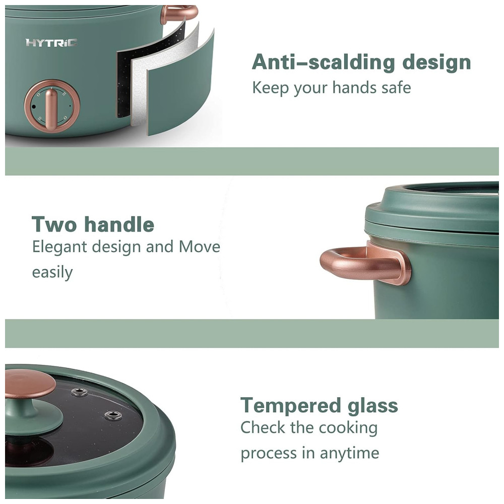 Eletrodoméstico de Cozinha Conveniente – A panela elétrica Hytric tem um tamanho adequado (27 cm x 22 cm x 16,5 cm) para fácil armazenamento e portabilidade, sendo particularmente útil em pequenos espaços sem cozinha, como apartamentos-estúdio, escritórios e dormitórios. Ela permite preparar suas refeições rapidamente a qualquer momento. Se você é amante de viagens, pode levá-la consigo e cozinhar suas comidas favoritas no hotel.
