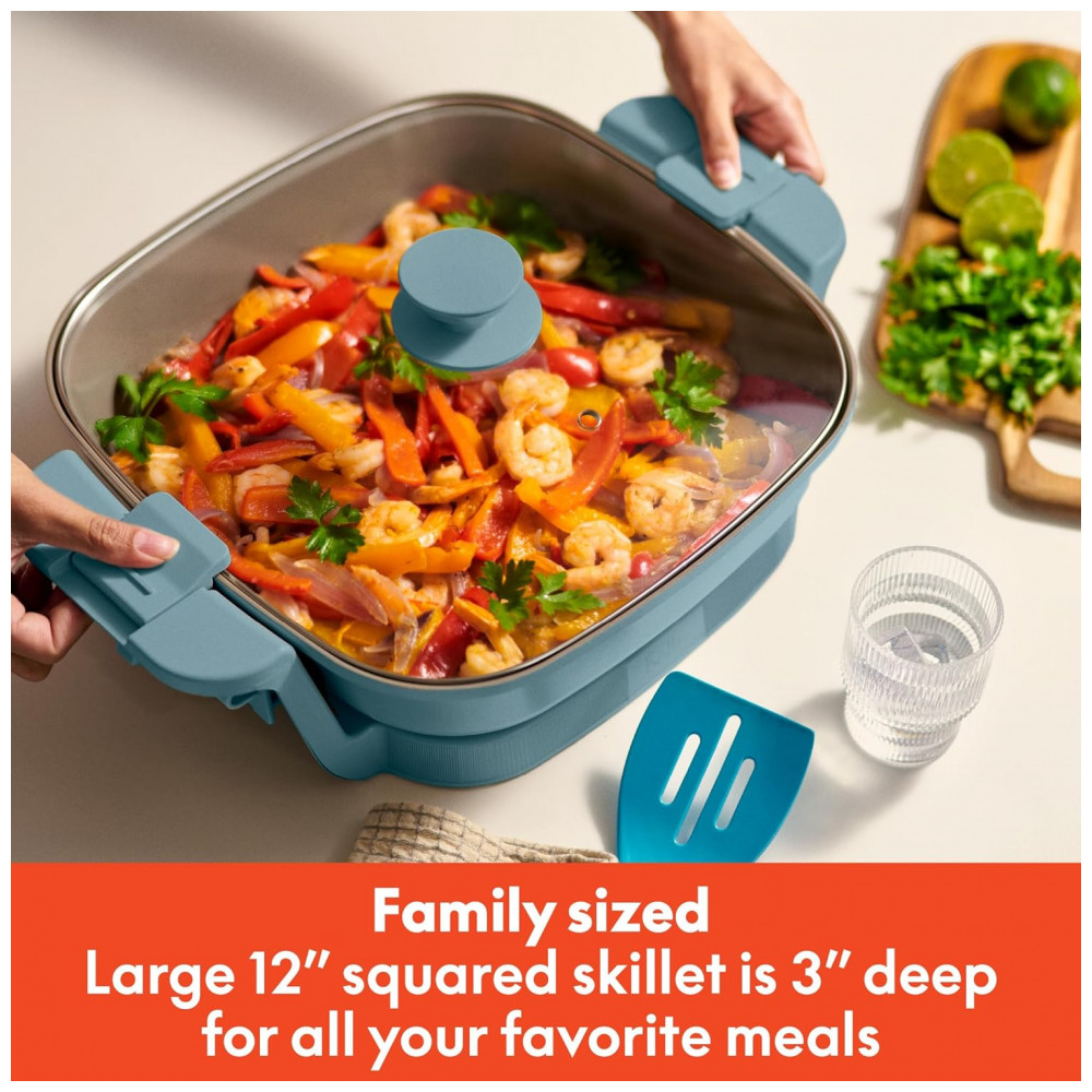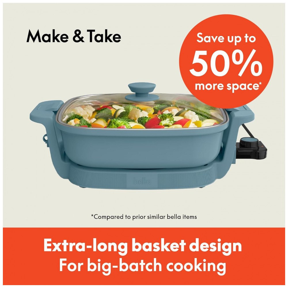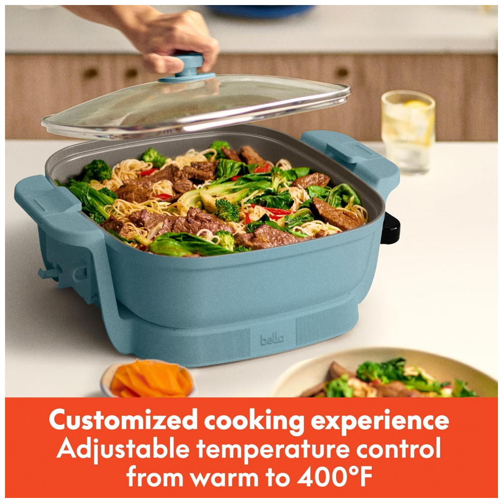 Panela elétrica Bella Make & Take 305 cm azul com tampa de vidro revestimento cerâmico EverGood base em alumínio fundido 1200W 110V