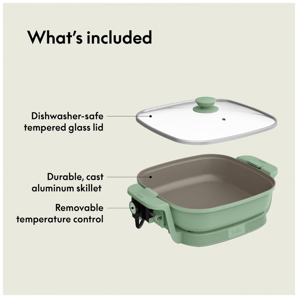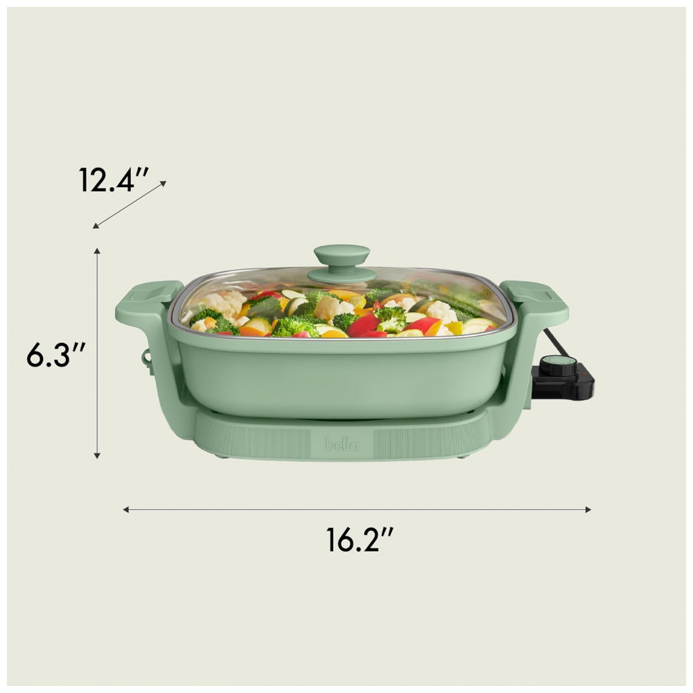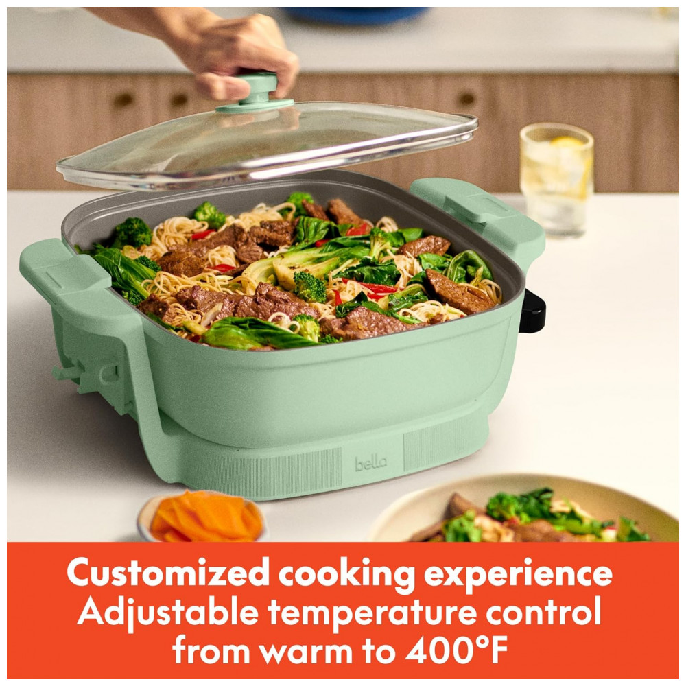 Panela elétrica Bella Make & Take 305 cm verde com tampa de vidro revestimento cerâmico EverGood base em alumínio fundido 1200W 110V