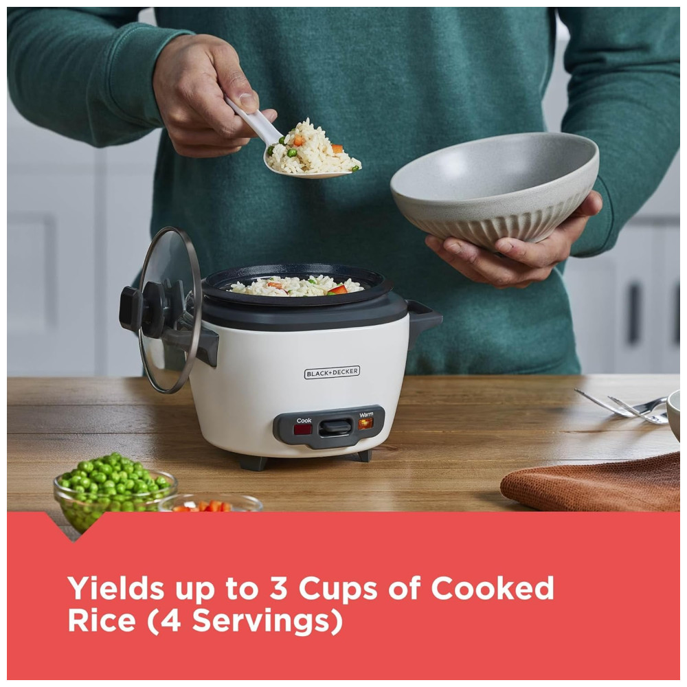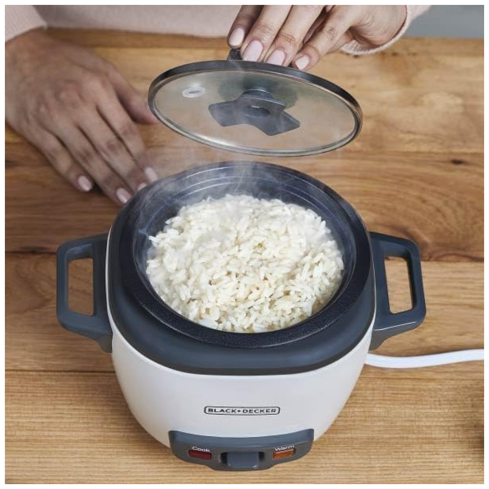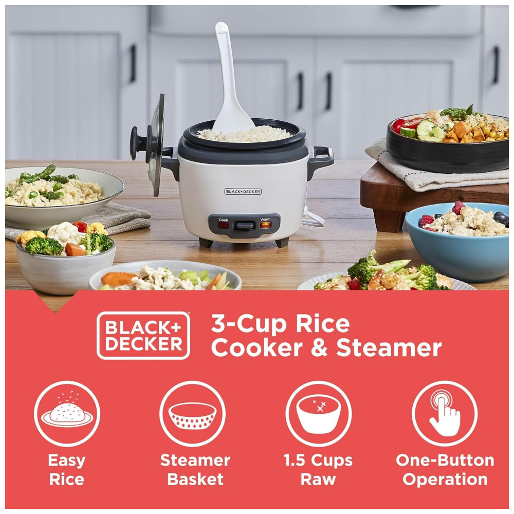 Panela Elétrica de Arroz BLACK+DECKER 3 Copos 15 Copo de Arroz Cru 3 Copos Cozidos Cesto de Cozimento a Vapor Tigela Antiaderente Removível