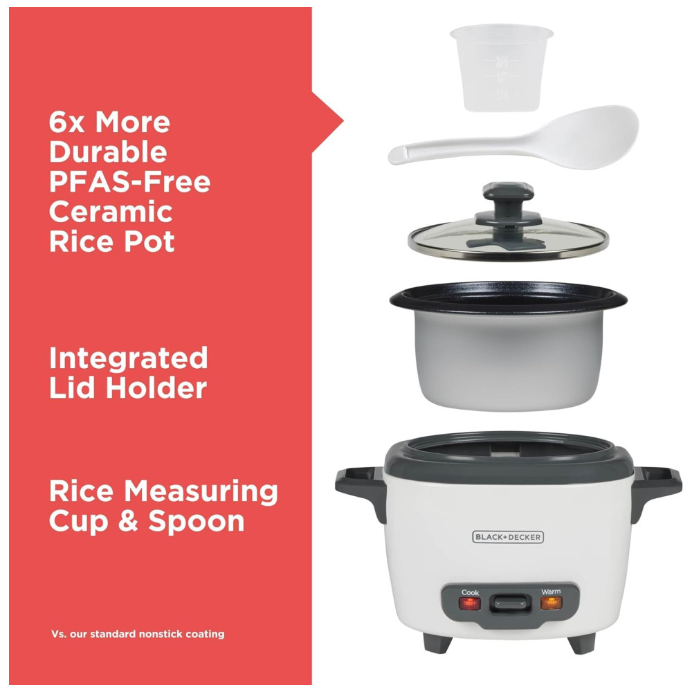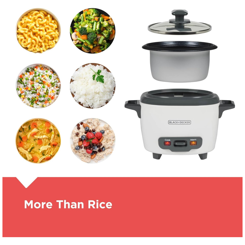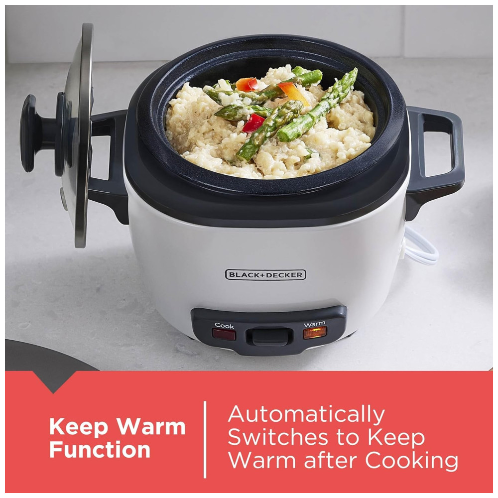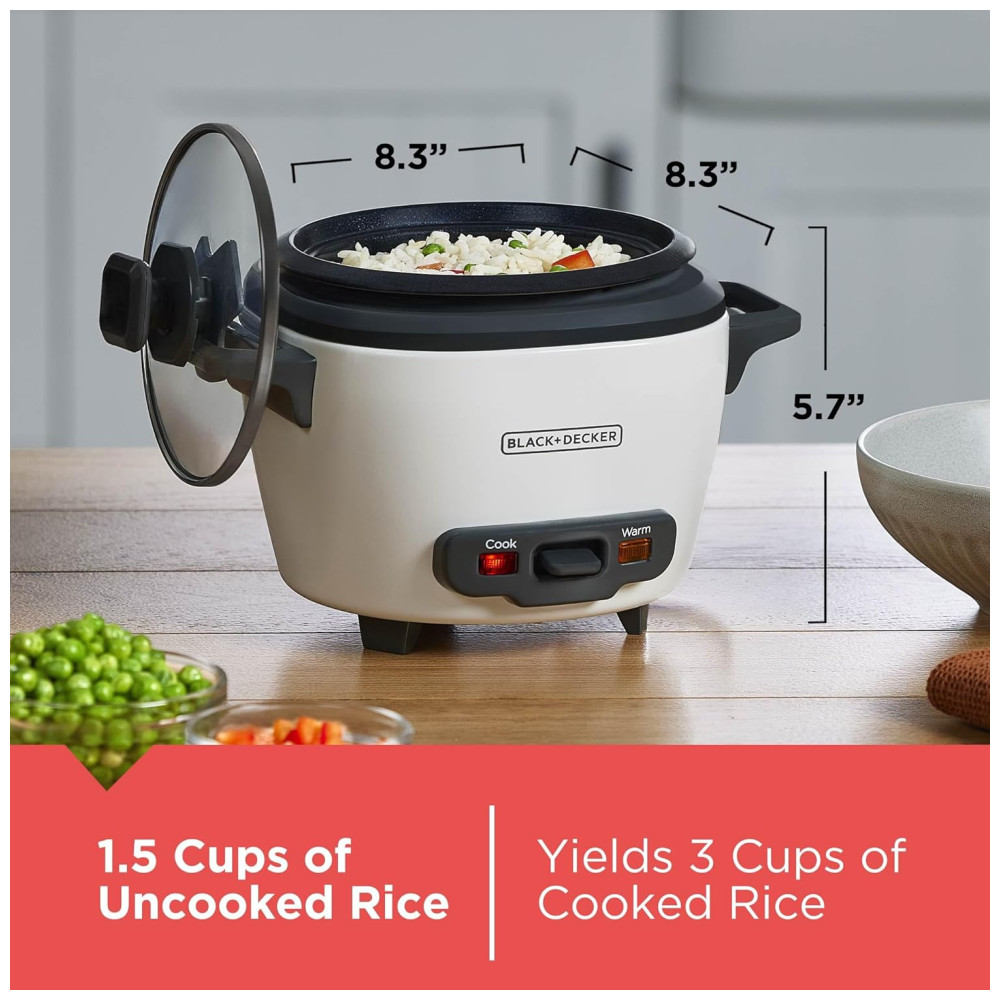 Panela Elétrica de Arroz BLACK+DECKER 3 Copos 15 Copo de Arroz Cru 3 Copos Cozidos Cesto de Cozimento a Vapor Tigela Antiaderente Removível