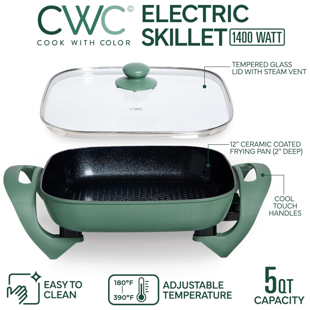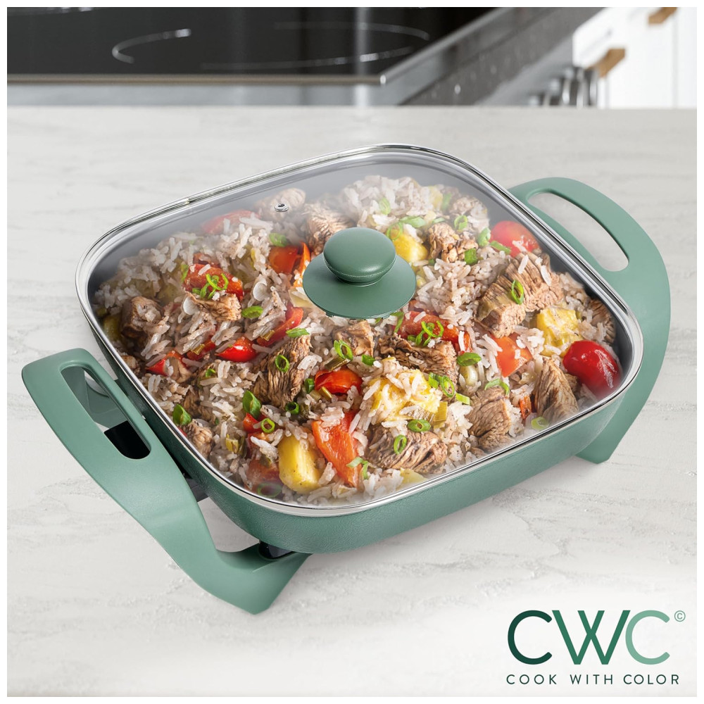 Panela Elétrica COOK WITH COLOR 30cm x 30cm com Revestimento Cerâmico Antiaderente Livre de Substâncias Nocivas 1400W Tampa de Vidro Controle de Temperatura