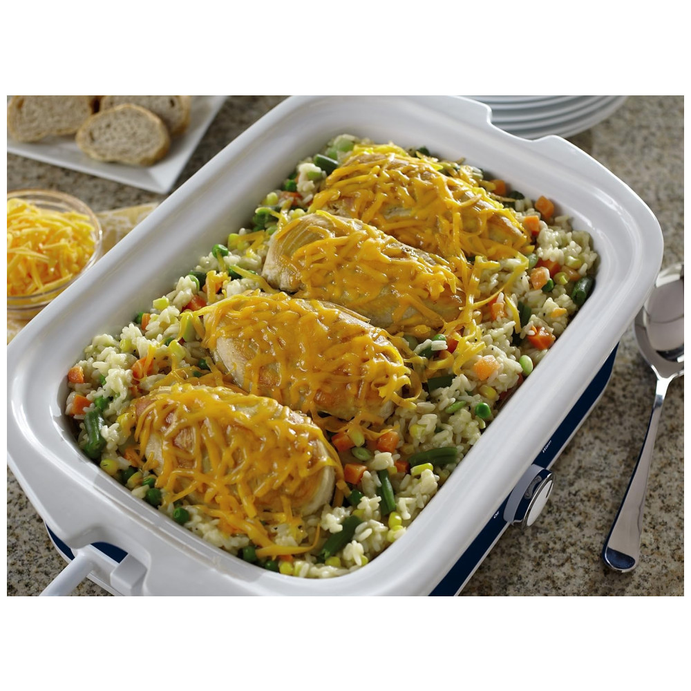 Feita de plástico, vidro e cerâmica, esta panela possui capacidade de 3,3 litros, perfeita para servir 3 ou mais pessoas. O recipiente removível de cerâmica, com formato retangular de 23 cm x 33 cm, é compatível com o forno e oferece o tamanho ideal para preparar e servir receitas como lasanhas, caçarolas e outros pratos deliciosos.