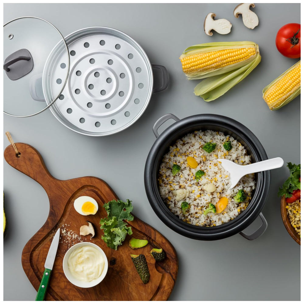 Inclui bandeja a vapor, copo de medição de arroz e espátula de servir