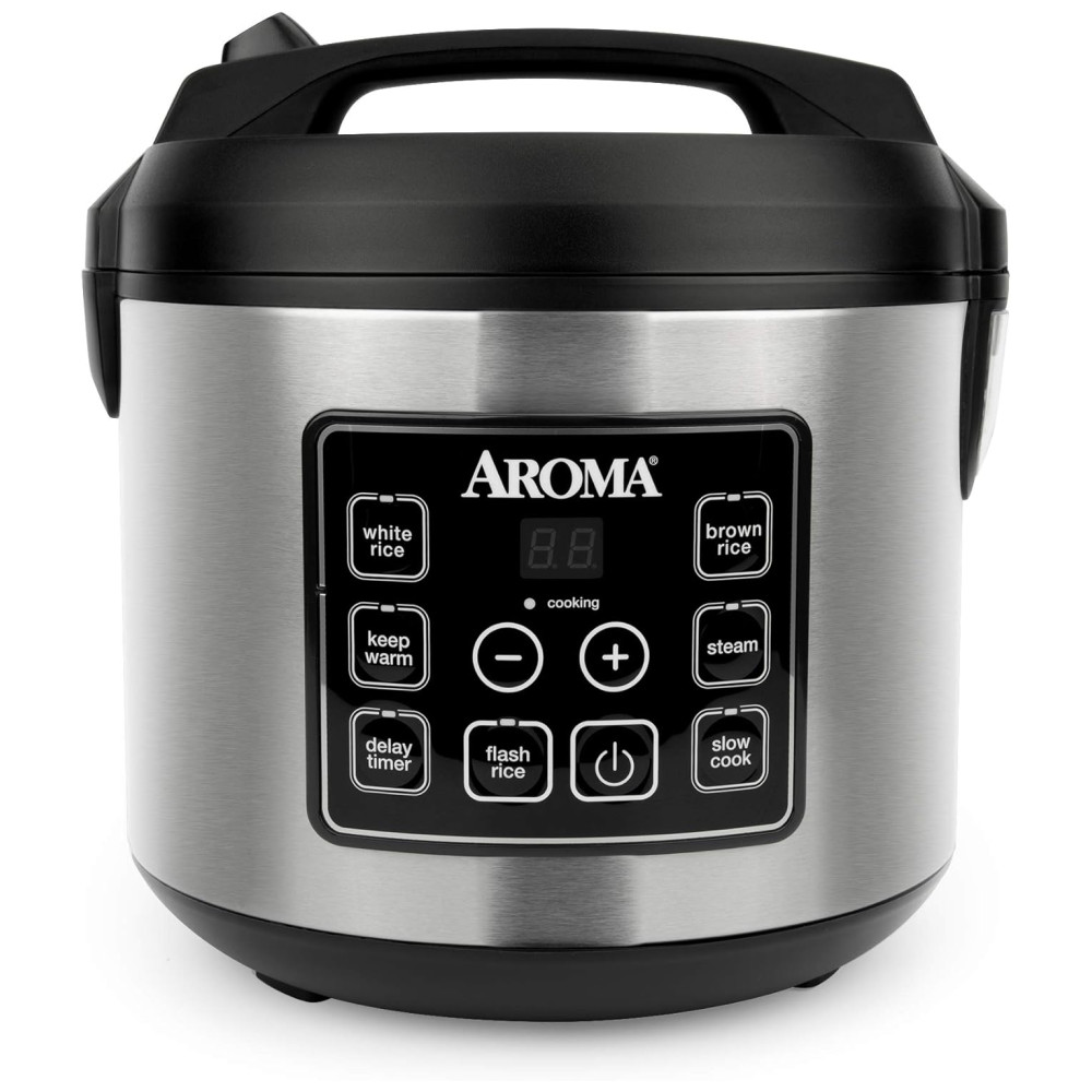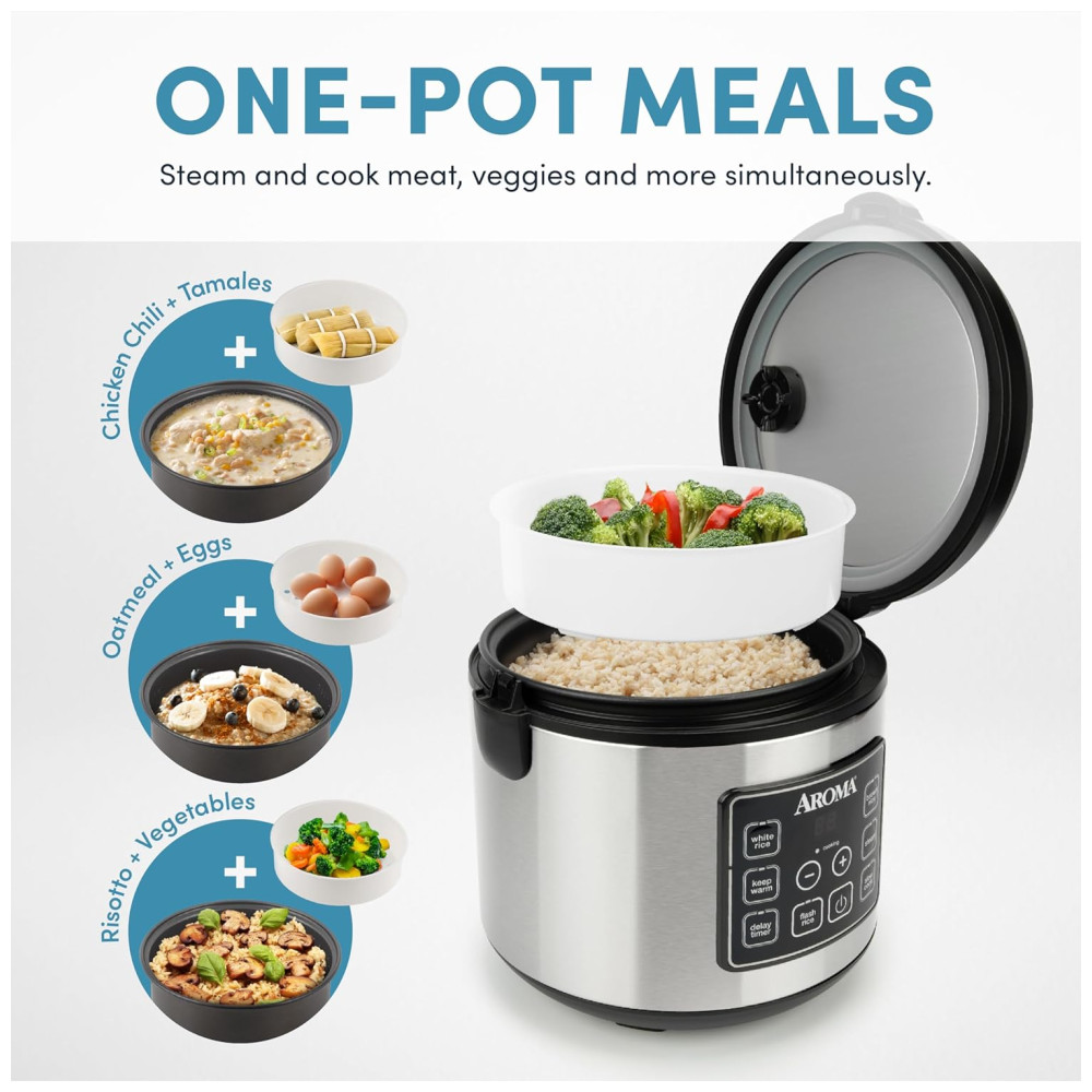 Fácil de usar, controles digitais programáveis com funções automáticas de manter aquecido e branco emarrom, funções de cozimento a vapor e cozinheiro lento