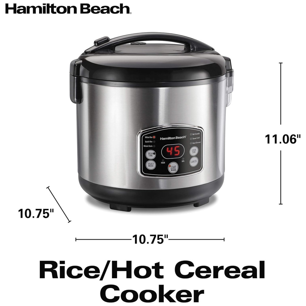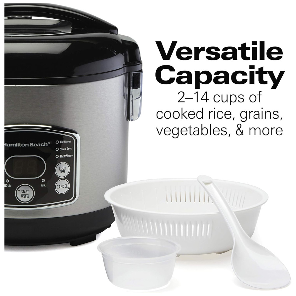 Capacidade versátil A panela de arroz, quente faz de 473 g a 3,3 kg xícaras de arroz e grãos cozidos, cereais quentes, legumes no vapor e muito mais.