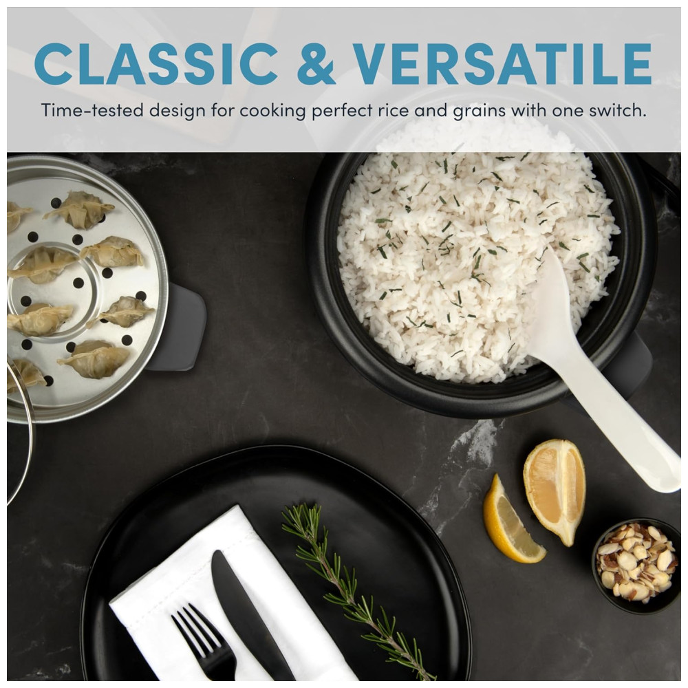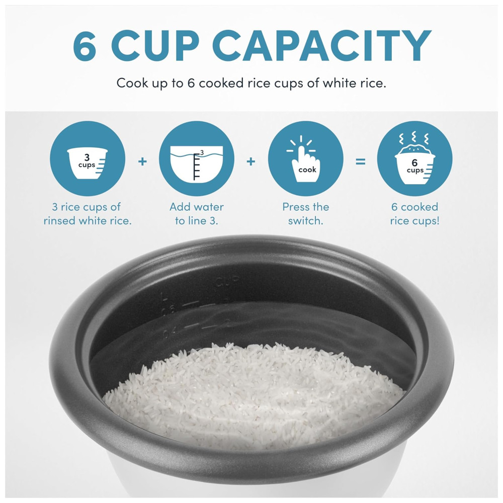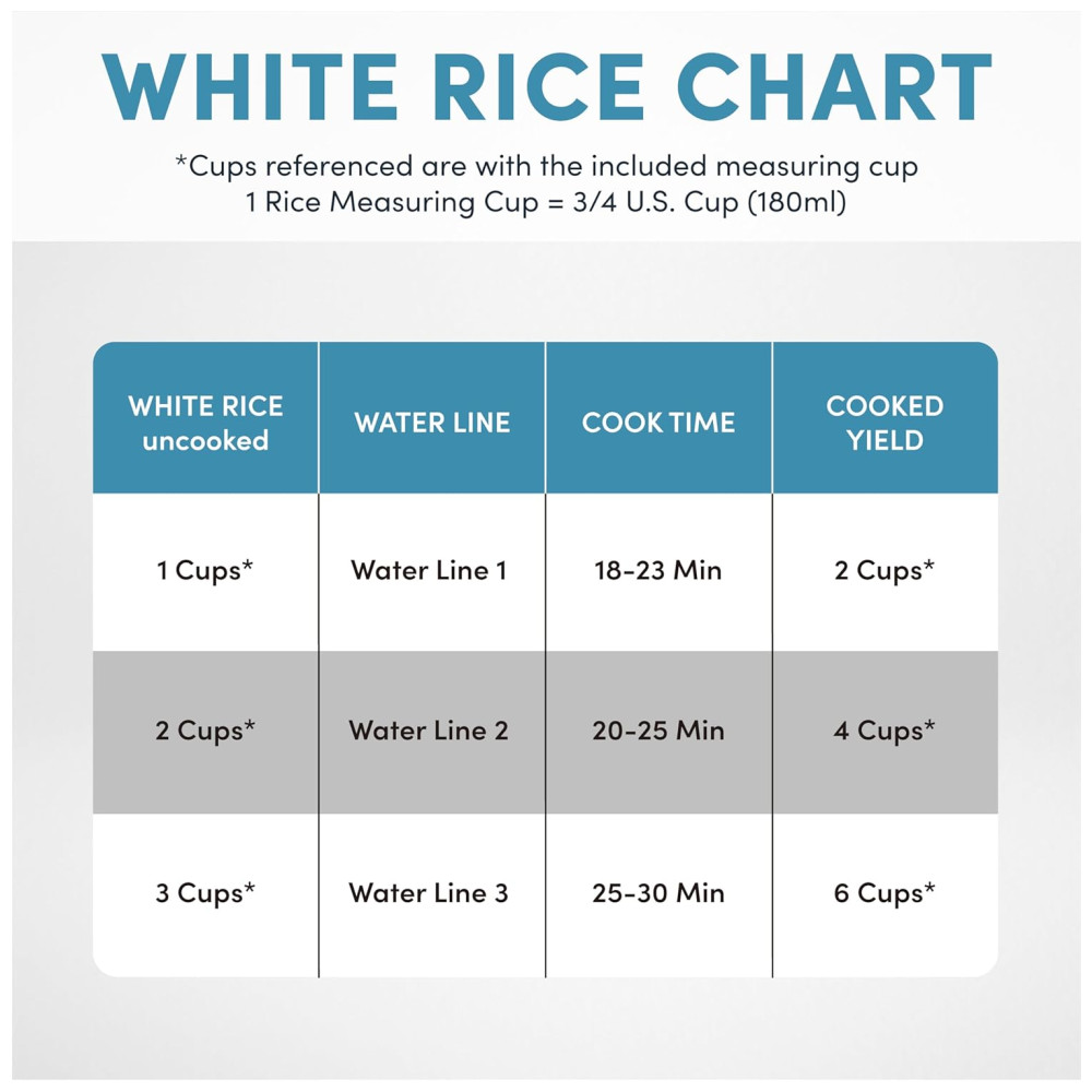Capacidade compacta capacidade cozida de 6 xícaras 1,4 L rendendo de 2 xícaras 473 ml a 6 xícaras de arroz cozido. Sua capacidade compacta é perfeita para preparar pequenas refeições individuais ou deliciosos acompanhamentos.