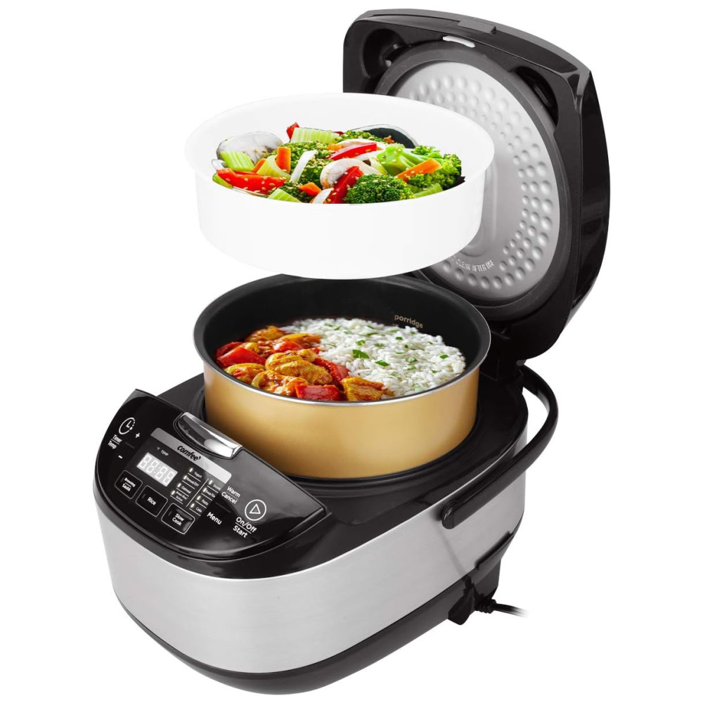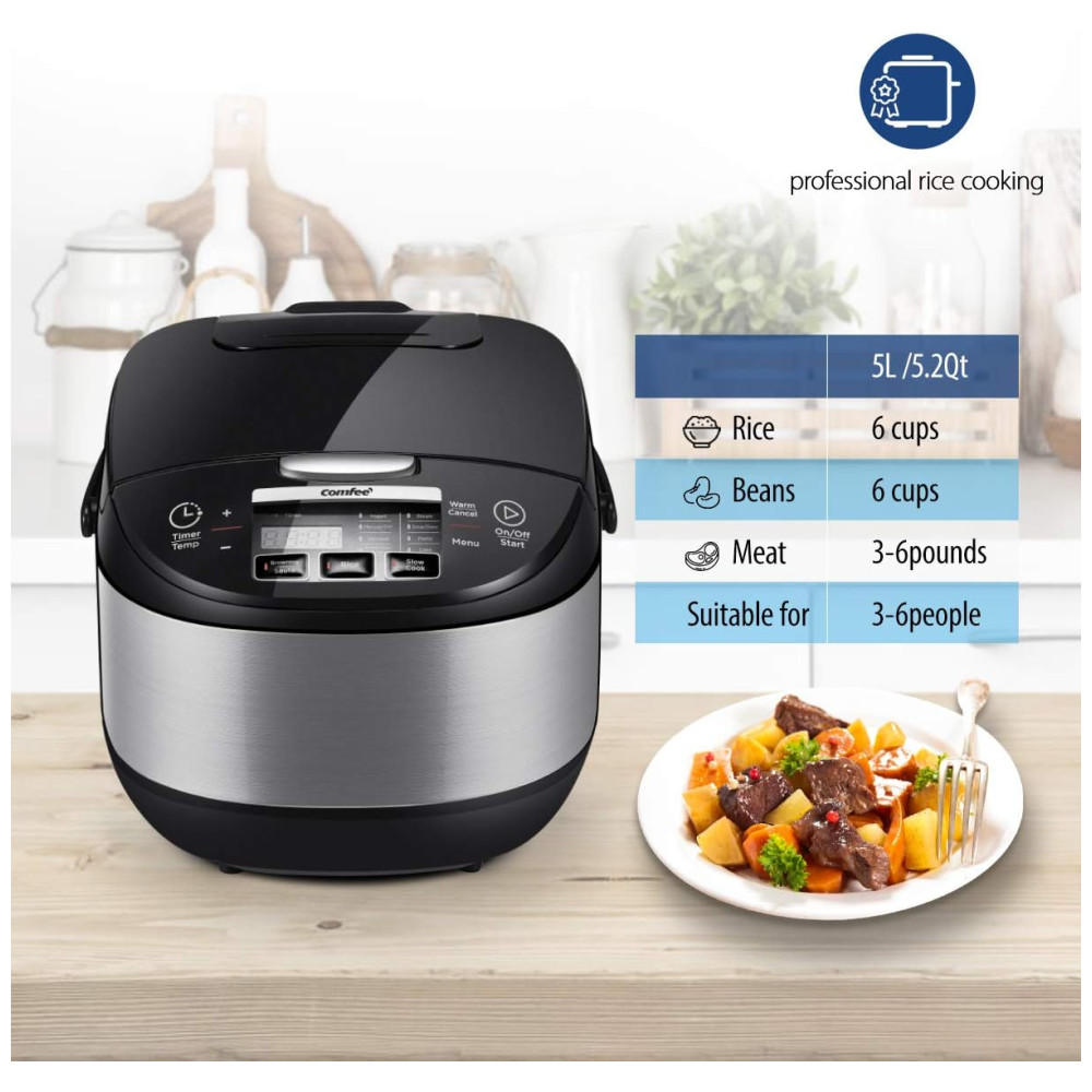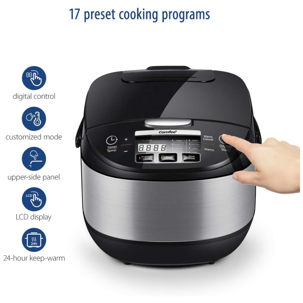 Alta Segurança Panela elétrica de arroz múltipla COMFEE operando sob pressão normal com força, é considerada uma alternativa segura de todos os tipos de panela de pressão ou cozinhar no fogão. As alças de toque frio garantem sua segurança ao abrir o fogão.
