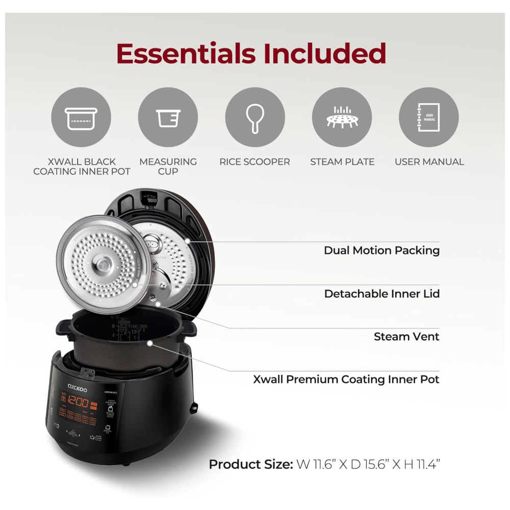 Panela Elétrica de Arroz de Pressão Multifuncional e Programável Panela Antiaderente preta CUCKOO CRP PK1001S Preto