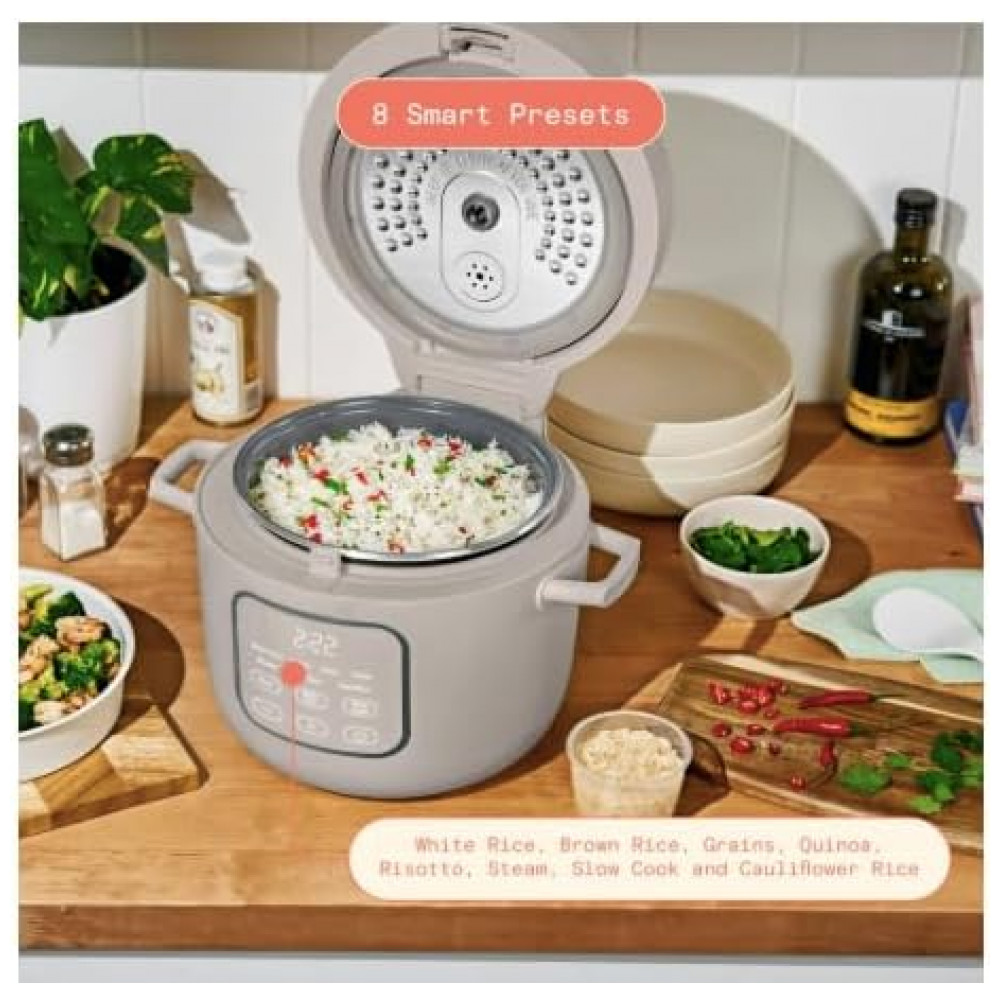 Panela elétrica de arroz e grãos Beautiful 26L bege com revestimento cerâmico 8 programas bandeja de vapor 500W 110V