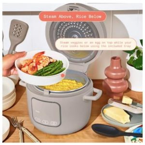 Panela elétrica de arroz e grãos Beautiful 26L bege com revestimento cerâmico 8 programas bandeja de vapor 500W 110V