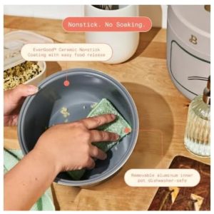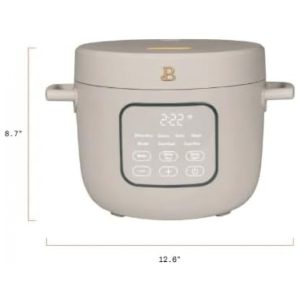 Panela elétrica de arroz e grãos Beautiful com capacidade aproximada de 2,6 litros (até 14 xícaras conforme medida do copo de arroz), indicada para preparo de arroz branco, arroz integral, grãos, quinoa, risoto e receitas semelhantes. O aparelho conta com cuba interna em alumínio com revestimento cerâmico antiaderente, que facilita a remoção dos alimentos e a limpeza após o uso.