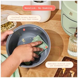 Panela elétrica de arroz e grãos Beautiful 26L verde com revestimento cerâmico 8 programas bandeja de vapor 500W 110V