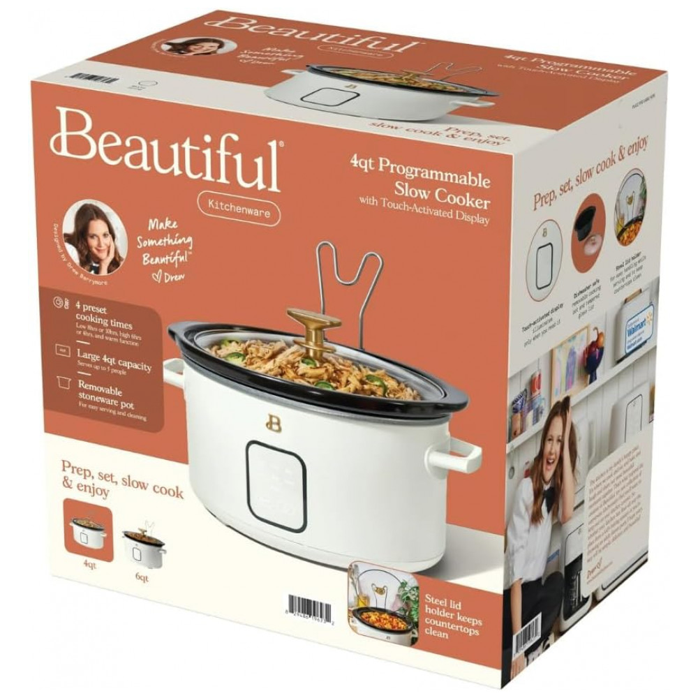 Panela elétrica de cozimento lento Beautiful 4L branca 1500W 110V painel touch