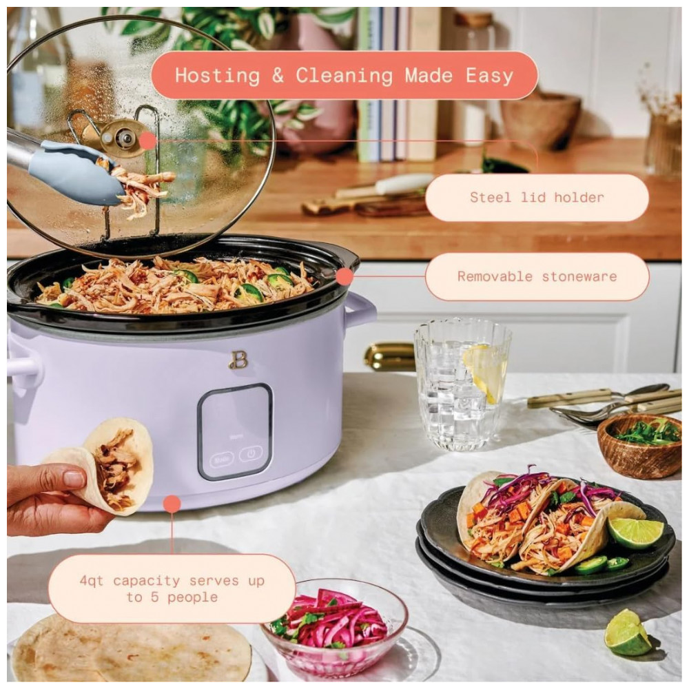 Panela elétrica de cozimento lento Beautiful 4L lavanda 1500W 110V painel touch