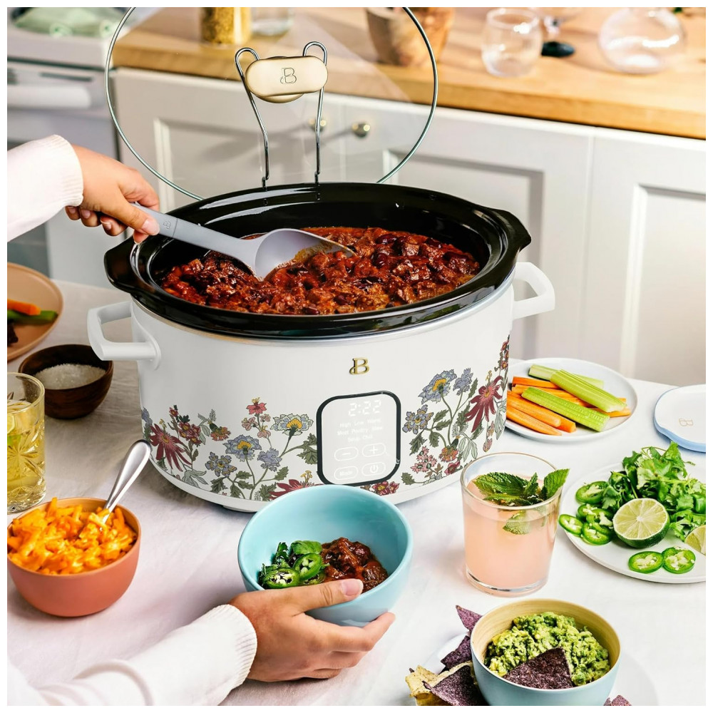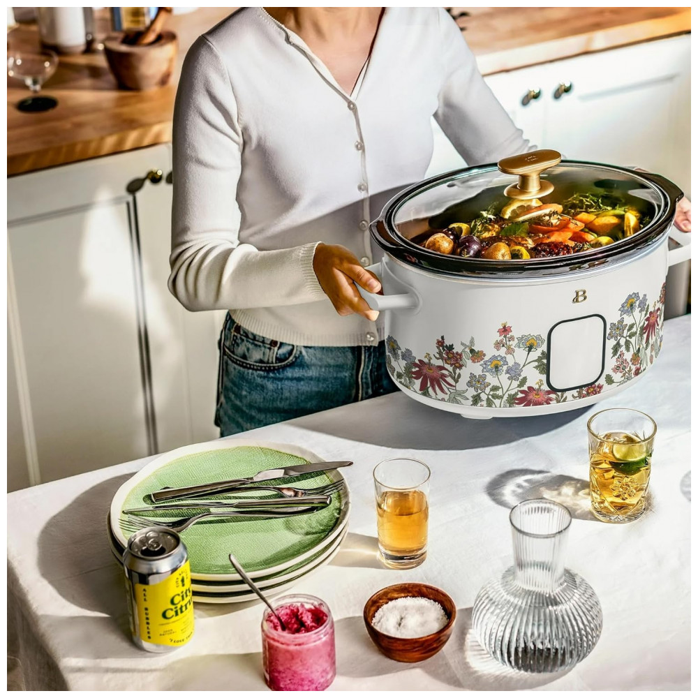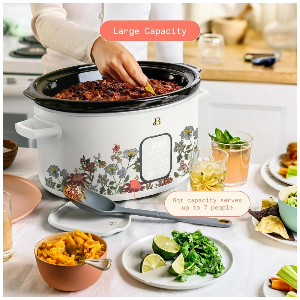 Panela elétrica de cozimento lento Beautiful 6L programável branca Wildflower Drew Barrymore 210W 5 funções 110V