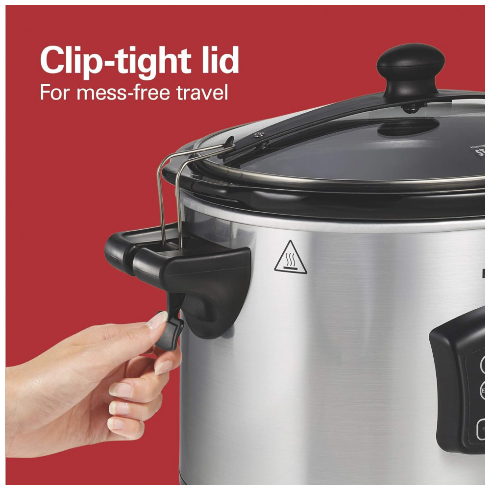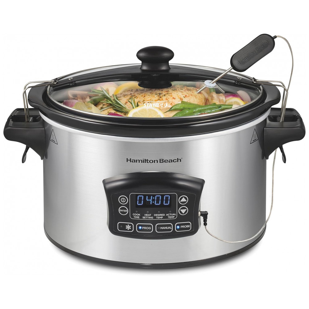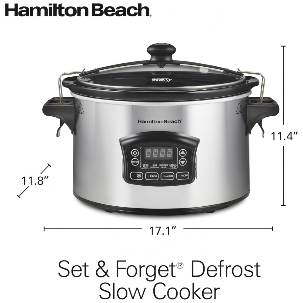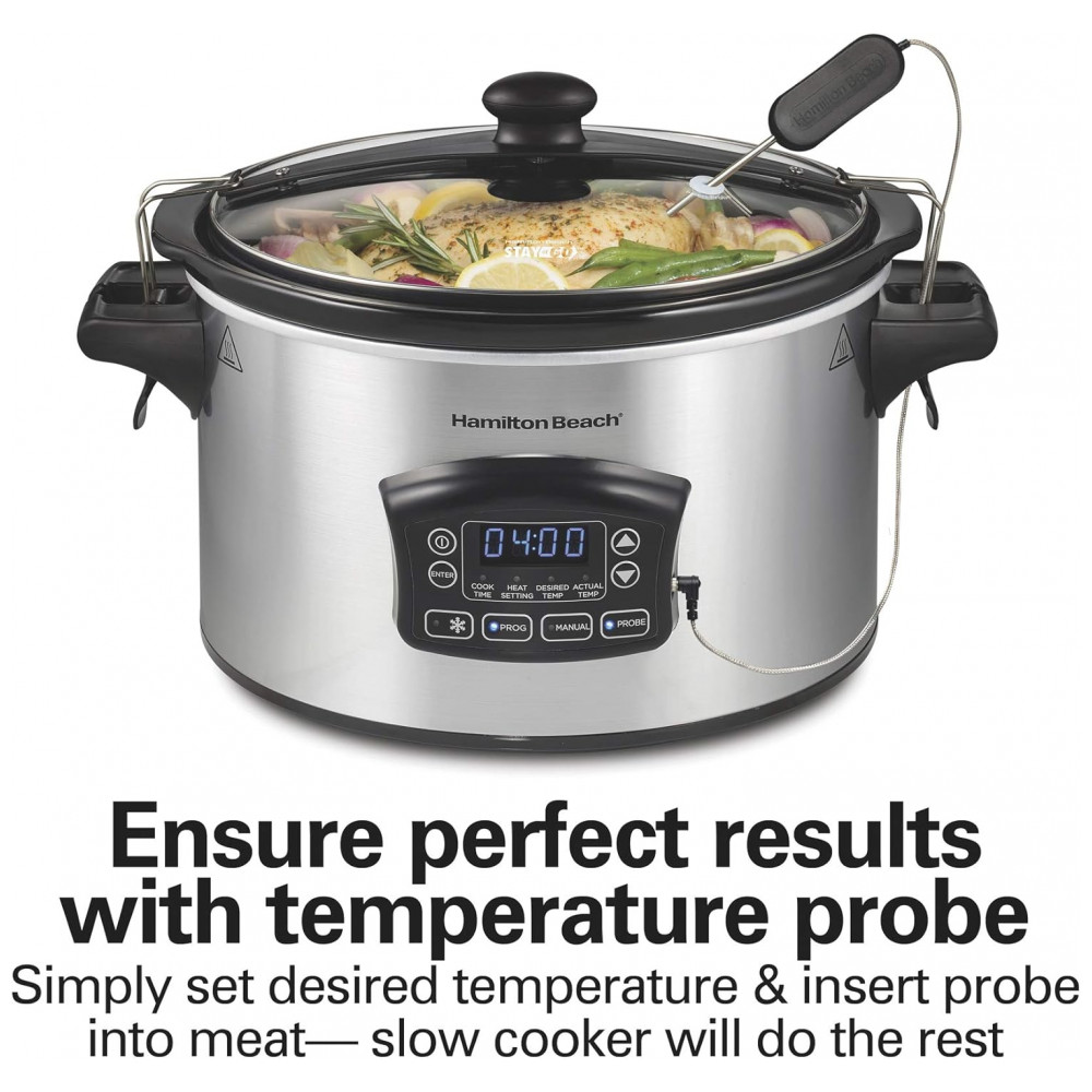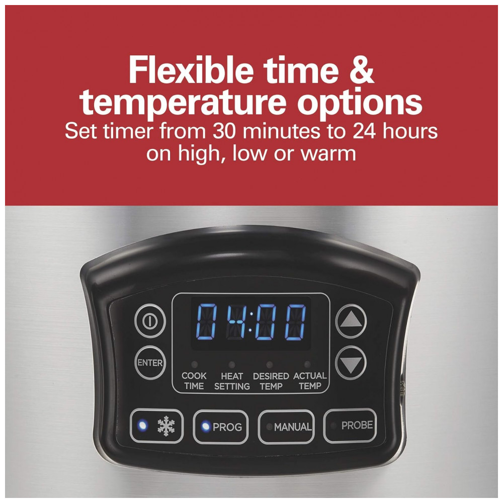 Panela Elétrica de Cozimento Lento Programável Digital Portátil Hamilton Beach 568 litros Set Forget com Trava de Tampa Sonda de Temperatura Função de