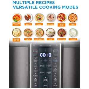 Prepare refeições deliciosas de forma prática e versátil com a Panela Elétrica de Pressão Midea 12 em 1. Com capacidade de 6 litros, possui 12 programas pré-definidos que incluem funções como pressão, cozimento lento, panela de arroz, vaporização, e até mesmo fabricação de iogurte. Fabricada em aço inoxidável durável, garante cozimento uniforme preservando o sabor e os nutrientes dos alimentos. Com programas inteligentes e capacidade para famílias, é uma solução eficiente e segura para o seu dia a dia na cozinha. A tecnologia avançada proporciona proteção extra, garantindo uma experiência tranquila ao cozinhar. Além disso, o cozimento em uma panela só é até 70% mais rápido do que os métodos tradicionais!