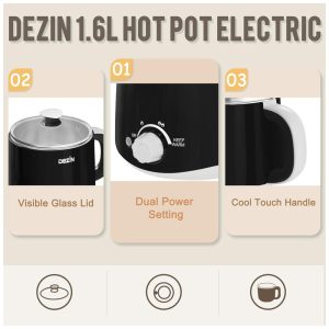 Panela Elétrica Dezin Hot Pot 16L em Aço Inox – Ideal para Cozinhar Macarrão Ovo Dumpling e Sopa Rapidamente