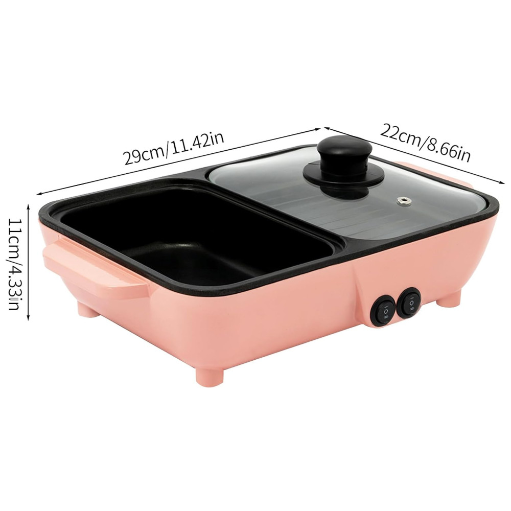 Panela Elétrica e Grill Antiaderente e Controle de Temperatura 110V 1200W SNKOURIN Rosa