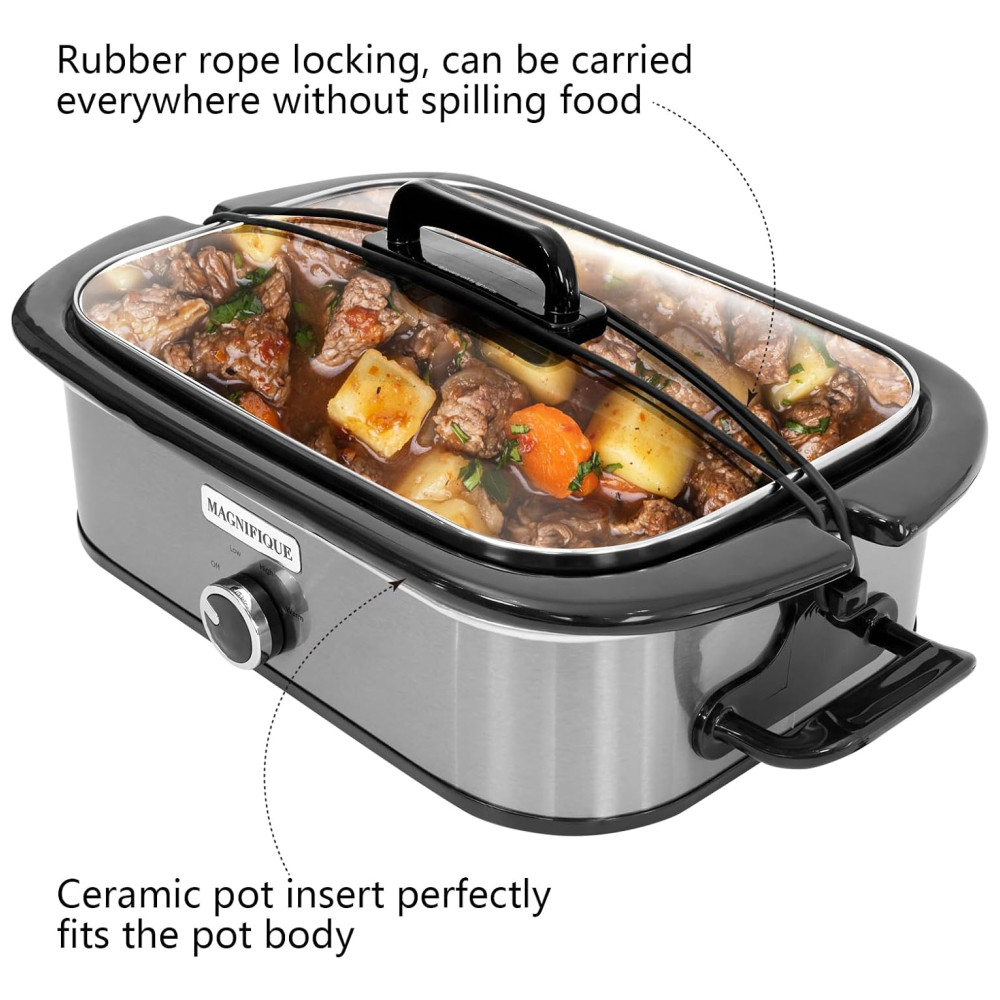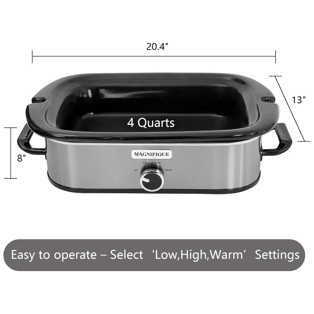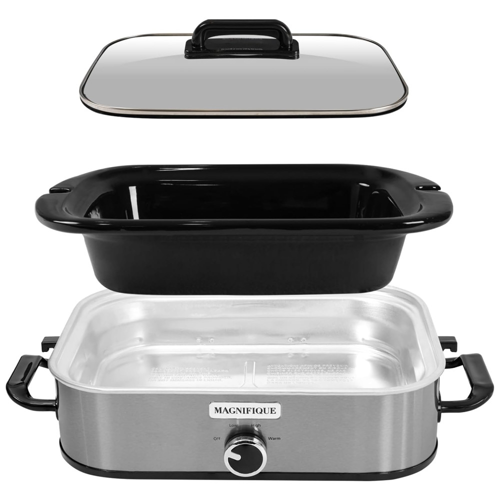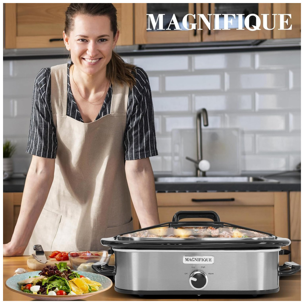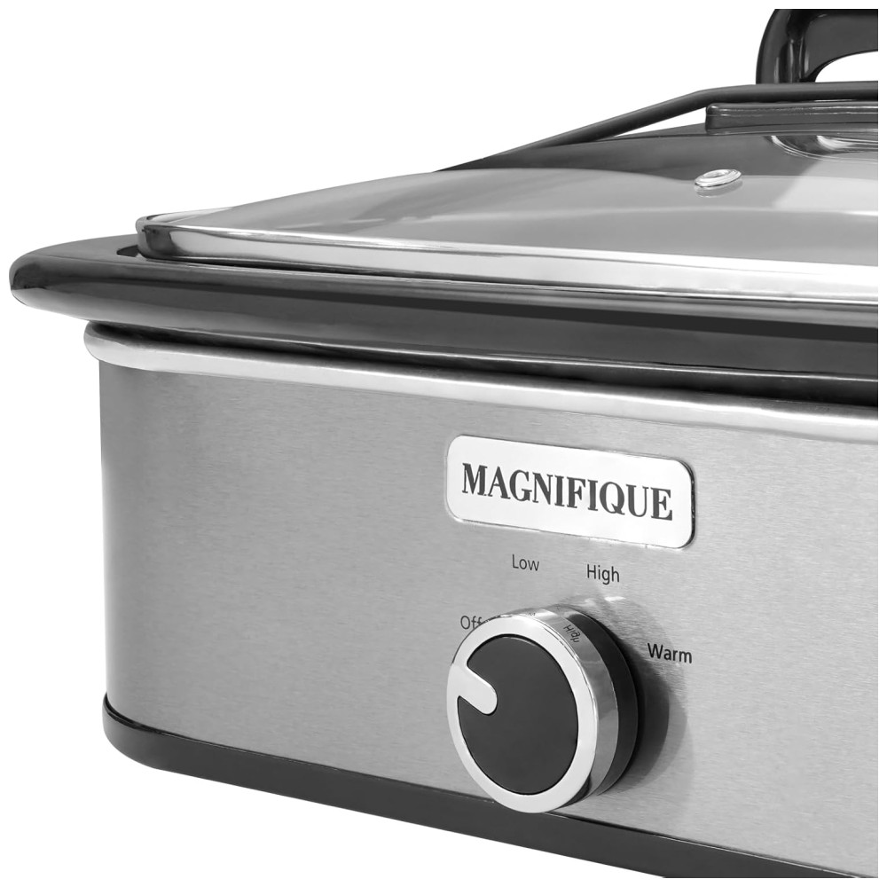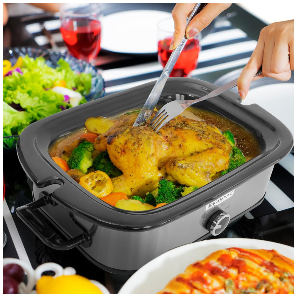 A panela Magnifique é a escolha perfeita para jantares em família. Com uma capacidade de 3,73 litros, esta panela de barro é própria para máquina de lavar louça e feita de aço inoxidável. Com múltiplas configurações de calor, você pode escolher entre temperaturas de cozimento baixa ou alta, dependendo do que está cozinhando e por quanto tempo deseja cozinhar lentamente.