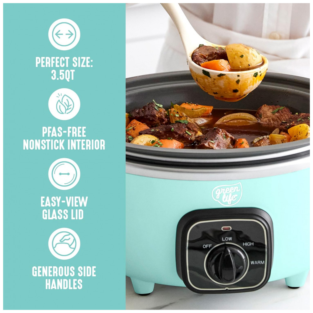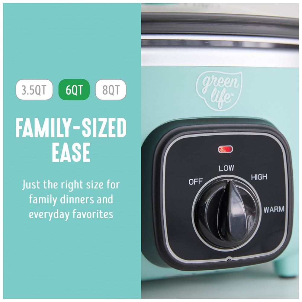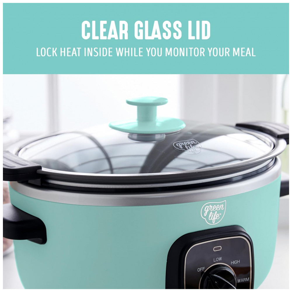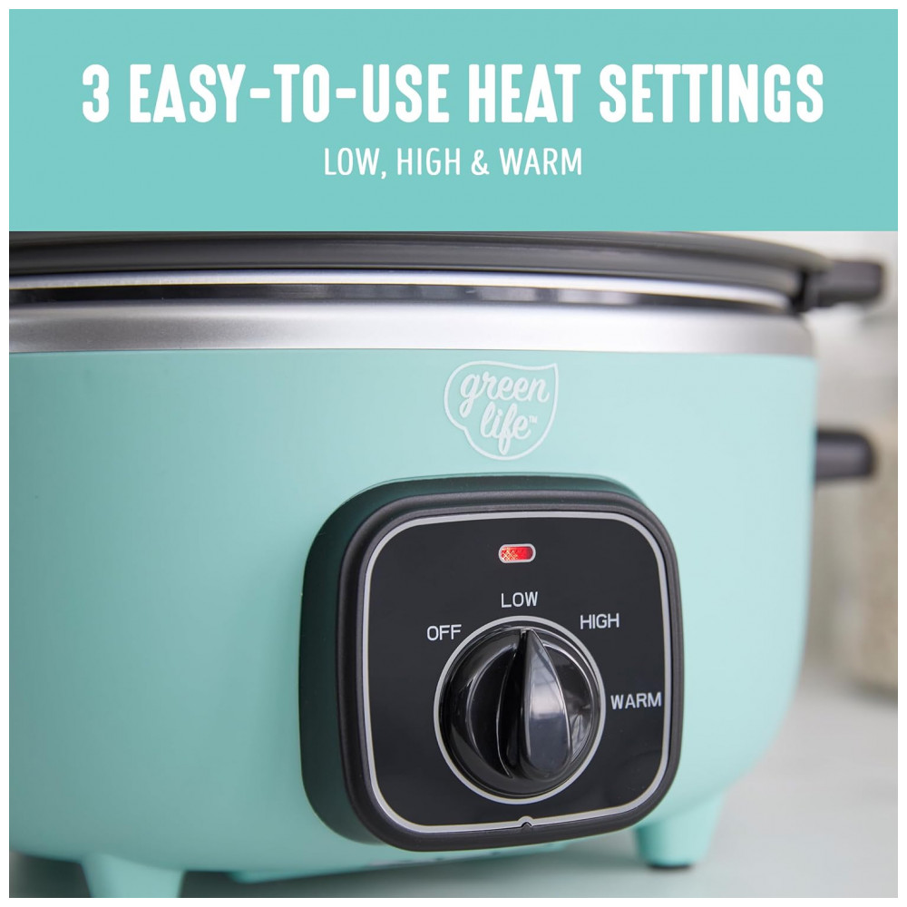 A Panela Elétrica GreenLife torna fácil preparar refeições deliciosas sem preocupações. Com sua panela removível de 3,31 litros, é ideal para sopas, ensopados, chilli e muito mais. Seu design compacto economiza espaço na bancada e nos armários. A panela removível pode ser usada no fogão e forno a até 204°C, permitindo dourar os alimentos antes de cozinhar lentamente. O revestimento cerâmico antiaderente da GreenLife facilita a limpeza, sendo livre de PFAS para refeições mais saudáveis. O seletor de controle simples possui configurações de Baixo, Alto e Manter Aquecido para se adaptar à sua receita e rotina, enquanto a tampa de vidro transparente permite monitorar a comida sem perder calor. Quando a comida estiver pronta, basta girar o botão para Manter Aquecido e servir no seu tempo. Além disso, a panela removível e a tampa podem ser lavadas na lava-louças para facilitar a limpeza. CAPACIDADE DE 3,5 LITROS PERFEITA projetada para cozinhar sopas, ensopados, chili, assados e muito mais no dia a dia. Além disso, o tamanho conveniente economiza espaço sem comprometer o sabor. PANELA PRONTA PARA O FOGÃO A panela leve pode ser removida para uso no fogão e forno a até 204°C, para dourar e cozinhar lentamente com mais sabor. REVESTIMENTO CERÂMICO ANTIADERENTE SAUDÁVEL O revestimento cerâmico saudável e fácil de limpar da GreenLife proporciona liberação fácil dos alimentos com uma limpeza rápida. LIVRE DE TOXINAS O revestimento cerâmico antiaderente livre de PFAS da GreenLife proporciona refeições sem preocupações. PAINEL DE CONTROLE FÁCIL DE USAR 3 Configurações de Calor – Baixo, Alto, Manter Aquecido ENCONTRE A TEMPERATURA CERTA Se você precisa cozinhar em fogo baixo por mais tempo ou deseja acelerar o processo, as 3 configurações de temperatura tornarão suas refeições simples. TAMPA DE VIDRO TRANSPARENTE Uma tampa de vidro transparente permite que você acompanhe o preparo da sua receita. FÁCIL DE LIMPAR Limpe a tampa e a panela com um pano ou coloque na lava-louças para sujeiras difíceis. FUNÇÃO MANTER AQUECIDO Gire o botão para Manter Aquecido e mantenha sua refeição quente e pronta para servir sem cozinhar demais ou ressecar. ALÇAS LATERAIS DURÁVEIS As alças ficam frias ao toque, proporcionando uma aderência segura para transferências sem problemas.