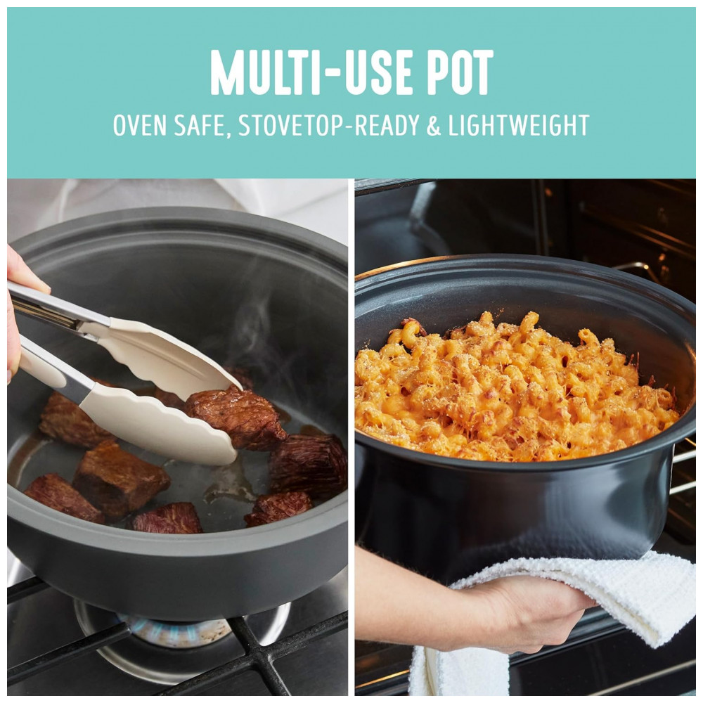 Panela Elétrica GreenLife 331 Litros Revestimento Cerâmico Livre de PFAS Programável Mantém Aquecido Pode ser Usada no Fogão e Forno Peças Laváveis