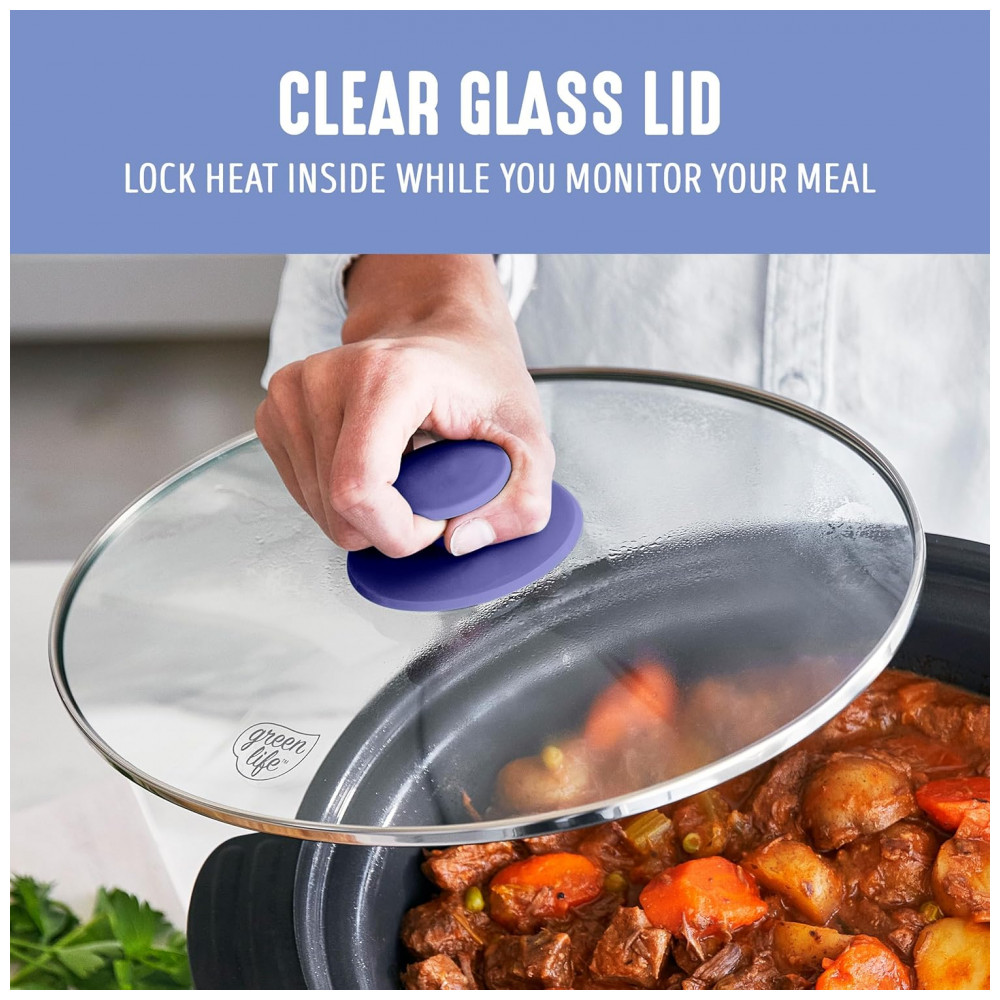 Panela Elétrica GreenLife 568 litros Cerâmica Livre de PFAS Programável Potência Removível e Saudável para Refeições em Família Dourar na Boca do Fogão
