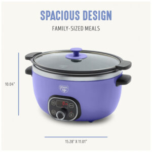 Esta panela elétrica multiuso possui uma panela antiaderente fácil de usar, que pode ser removida rapidamente para dourar e refogar, e depois retornada à base para cozinhar em fogo baixo e lento. É a maneira perfeita de infundir qualquer refeição com sabor irresistível. A panela extra profunda de 5,68 litros apresenta nosso revestimento de cerâmica antiaderente saudável para uma limpeza sem esforço e um desempenho fantástico. Além disso, é livre de PFAS, PFOA, chumbo e cádmio, para que tudo o que você preparar seja um pouco mais saudável. O painel de controle fácil de usar possui cinco funções de cozimento para aprimorar sua refeição, seja para atrasar o início por algumas horas ou programar a Panela Saudável por até 10 horas. Uma vez que sua refeição estiver pronta, esta panela elétrica muda para o modo de aquecimento para manter sua comida pronta por até 4 horas. A tampa e a panela podem ser lavadas na lava-louças para facilitar a limpeza. CAPACIDADE EXTRA-LARGA DE 5,68 LITROS A espaçosa panela de 5,68 litros comporta um frango de 2,7 kg, um assado de 1,8 kg ou o suficiente para servir 7 pessoas – ideal para jantares em família, preparação de refeições ou alimentar uma multidão. INTERIOR ANTIADERENTE DE CERÂMICA LIVRE DE TOXINAS Nosso revestimento é livre de PFAS, PFOA, chumbo e cádmio para que você possa tornar cada refeição mais saudável. Seu revestimento antiaderente de cerâmica saudável e fácil de limpar é derivado de areia e proporciona liberação sem esforço com limpeza rápida. PAINEL DE CONTROLE FÁCIL DE USAR Escolha entre 3 modos Baixo-Médio-Alto, use o Temporizador de Atraso e conte com o Manter Aquecido para servir quando estiver pronto. PERFEITO PARA PREPARAÇÃO DE REFEIÇÕES Cozinhe de 30 minutos a 20 horas, programe com até 10 horas de antecedência e mantenha aquecido por 4 horas – ideal para refeições adiantadas, manhãs agitadas ou preparar grandes lotes. PANELA PRONTA PARA O FOGÃO A panela é leve e removível para uso na boca do fogão e no forno, para que você possa começar com um dourar, terminar lentamente e obter mais sabor. TAMPA DE VIDRO TRANSPARENTE Uma tampa de vidro transparente permite que você acompanhe sua refeição. COMPONENTES LAVÁVEIS NA LAVA-LOUÇAS Panela interna removível e tampa para manutenção sem complicações e limpeza fácil.