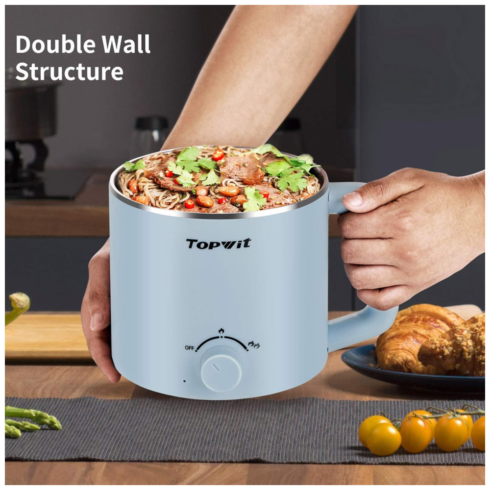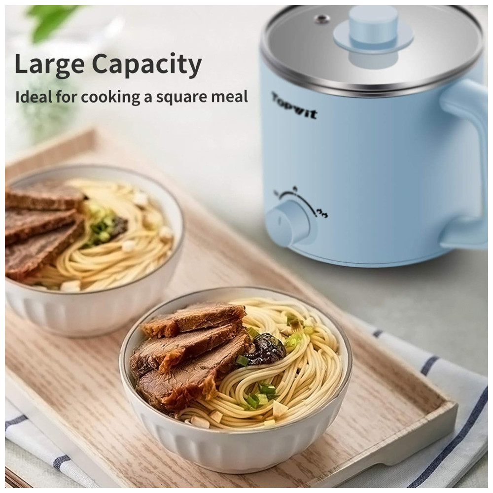 Ajuste de Potência Dupla: A nova Panela Elétrica Topwit de 1,6 litros possui ajuste de potência dupla (200W e 600W), permitindo preparar uma variedade de pratos com facilidade. Com a configuração de 200W, você pode fazer sopas, mingau, aveia e ferver ovos. Já para cozinhar macarrão, massas, bolinhos ou para o shabu-shabu, a configuração de 600W ferve a água mais rápido.