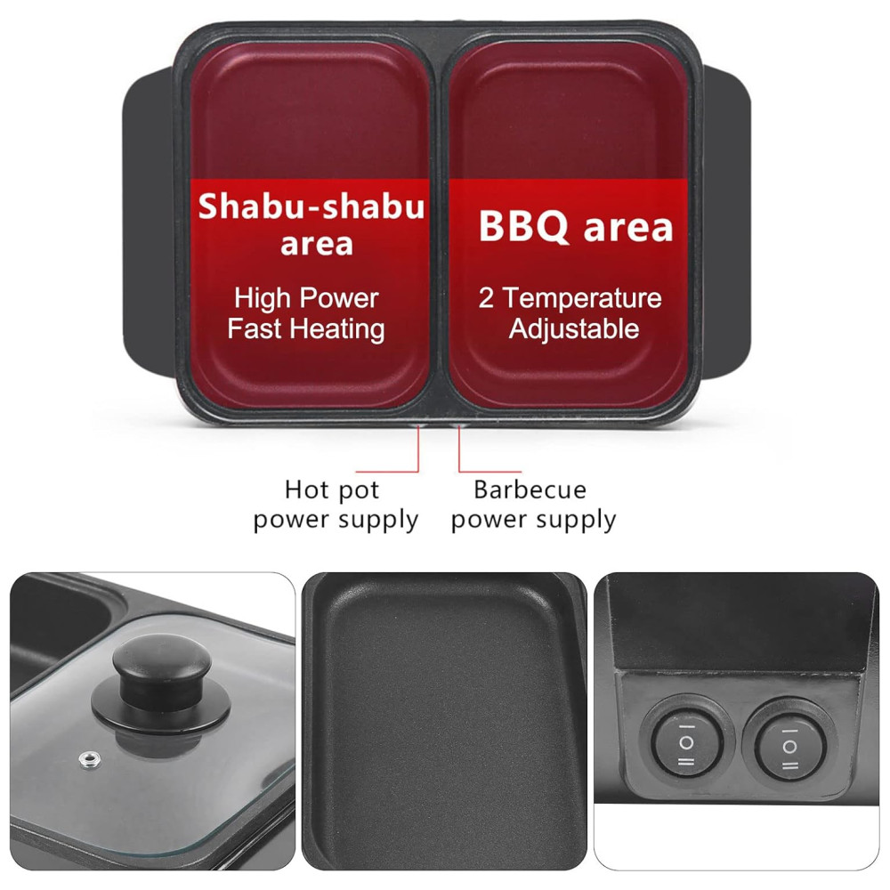 Churrasqueira e Hot Pot 2 em 1: Combine o melhor dos dois mundos! Com a panela e churrasqueira integradas, você pode preparar churrasco e fondue ao mesmo tempo, sem filas e sem gastar a mais no restaurante. Perfeita para festas e encontros com amigos e família.