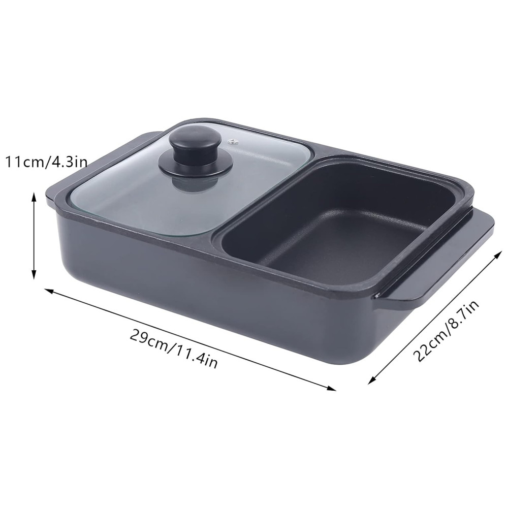 Controle de Temperatura Duplo: Com dimensões de 29 cm (C) x 22 cm (L) x 11 cm (A), a panela e a grelha possuem controles de temperatura independentes. Com 2 níveis de potência ajustáveis, o tubo de aquecimento de alta potência proporciona aquecimento rápido e uniforme, aumentando a eficiência do cozimento.