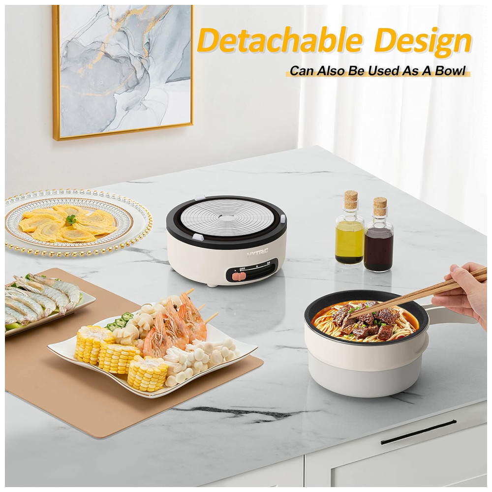 Configuração de Potência Dupla – Essencial para qualquer cozinha, esta panela multifuncional é ideal para as refeições diárias de solteiros ou casais. No modo de baixa potência, você pode cozinhar ramen, ovos mexidos e panquecas. No modo de alta potência, ela é perfeita para preparar espaguete, bifes, ensopados, frango e muito mais.