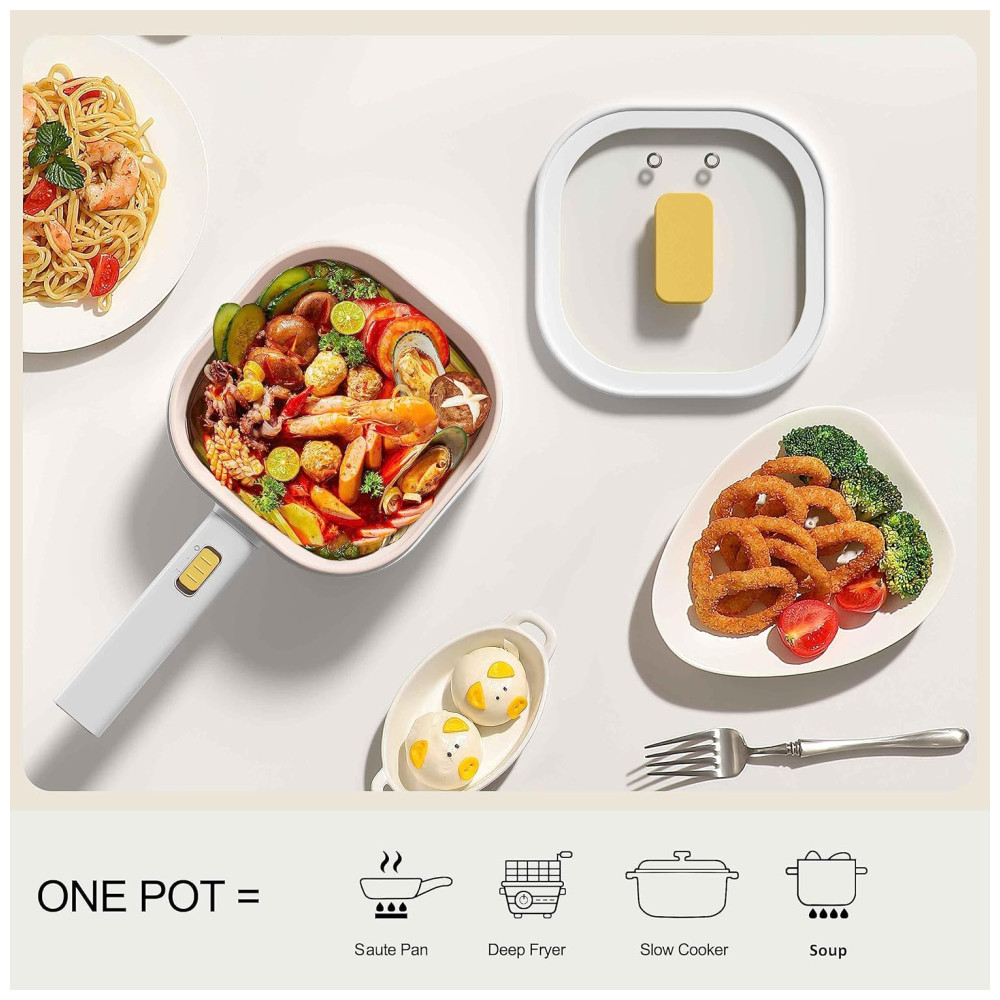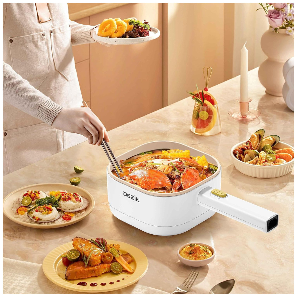 Descubra a Panela Elétrica Multifuncional Dezin, com 18,8 cm de diâmetro e 6,1 cm de altura. Esta panela compacta, mas espaçosa, é a solução ideal para quem mora em dormitórios ou trabalha em escritórios, permitindo preparar pratos deliciosos com facilidade. Além de cozinhar massas, você pode criar refeições variadas sem precisar de um fogão, oferecendo a liberdade de cozinhar e refogar quando desejar!