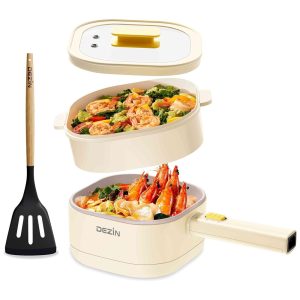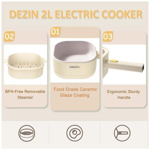 Design Portátil – Compacta e prática, a panela elétrica com vaporizador Dezin é ideal para viagens. Ela cozinha facilmente refeições em espaços pequenos, sendo perfeita para carros, viagens, dormitórios, apartamentos, hotéis e acampamentos.