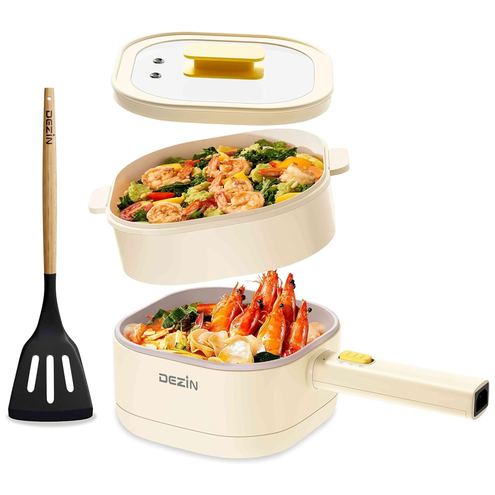 Design Portátil – Compacta e fácil de transportar, esta panela elétrica com vaporizador Dezin não ocupa muito espaço e é perfeita para viagens. Ela cozinha refeições facilmente, seja no carro, em viagens, dormitórios, apartamentos, hotéis ou acampamentos.